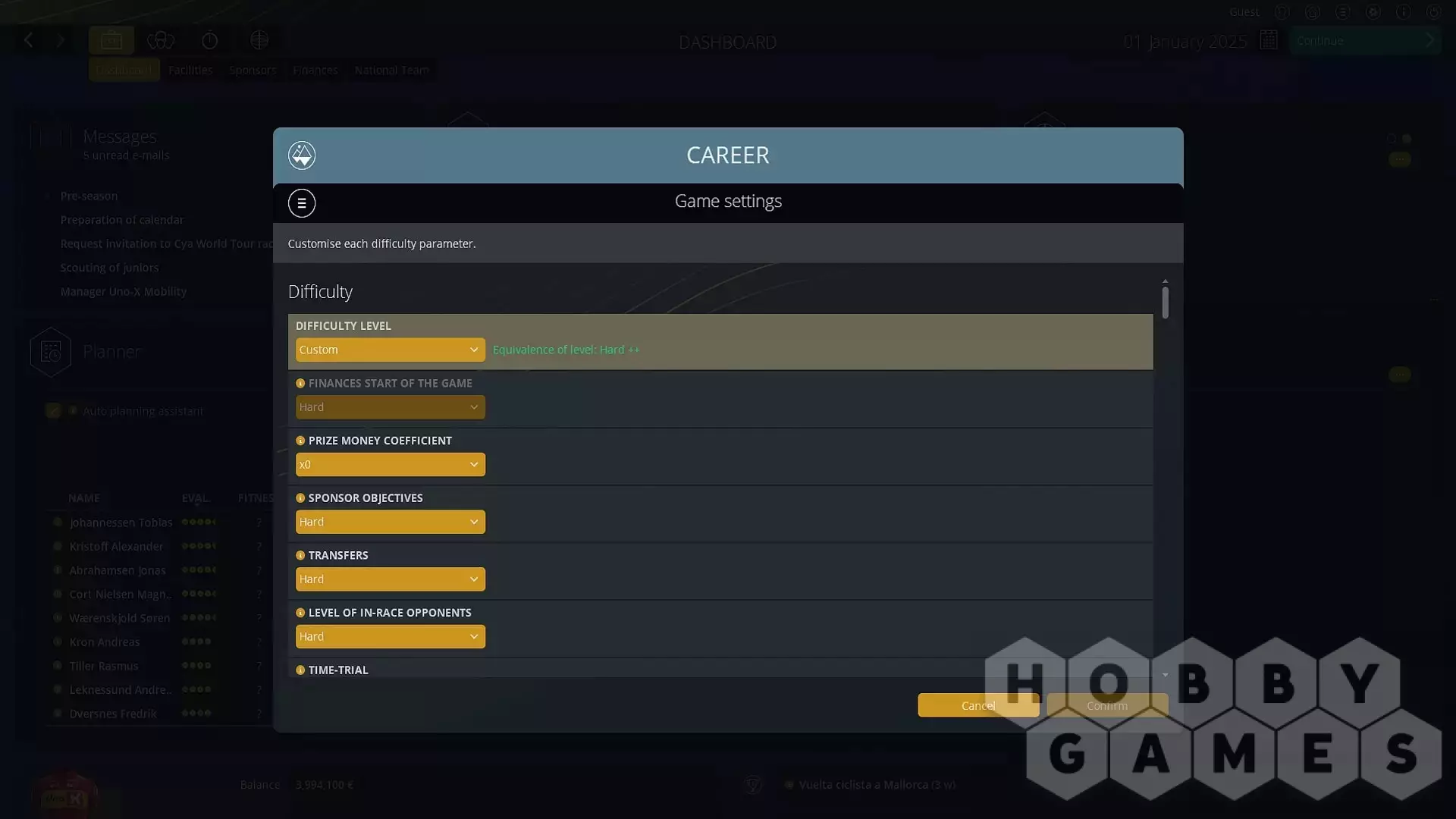 Make every game in Pro Cycling Manager 25 unique! Options are now decentralized and specific to each game. You can customize both new difficulty options (financial, level of opponents in the race, sponsor objectives, etc.) and choose game preferences (speed of characteristic evolution, AI sponsor renewal, recovery system and much more). Every game in Pro Cycling Manager is different, and in these, the player becomes master of his or her own game environment.