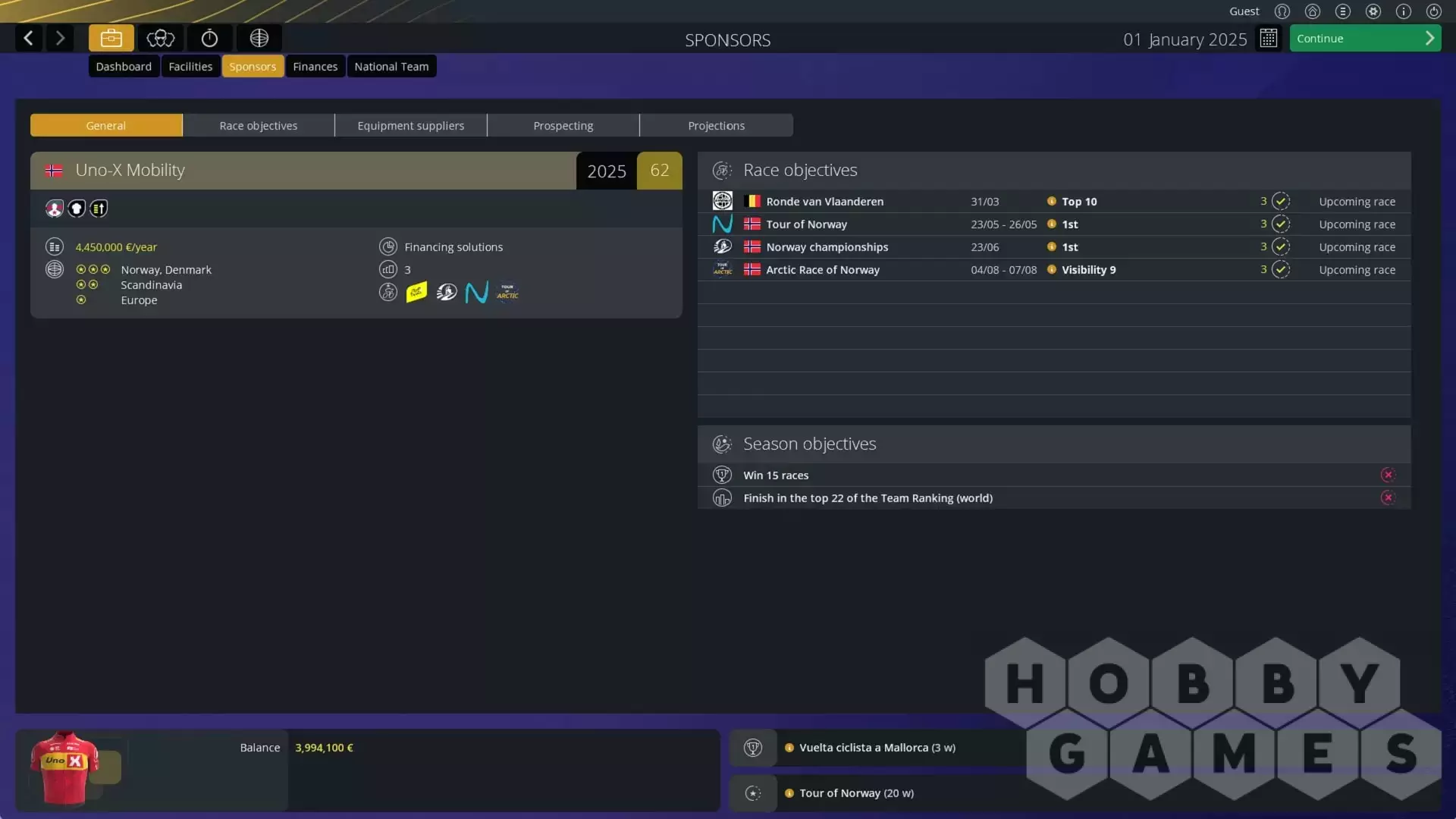 In Pro Cycling Manager 25, the choice of sponsors is crucial to your team's success. In addition to the budgetary advantage, sponsors now have their own additional parameters and conditions to meet if you want them to agree to finance your cycling team.