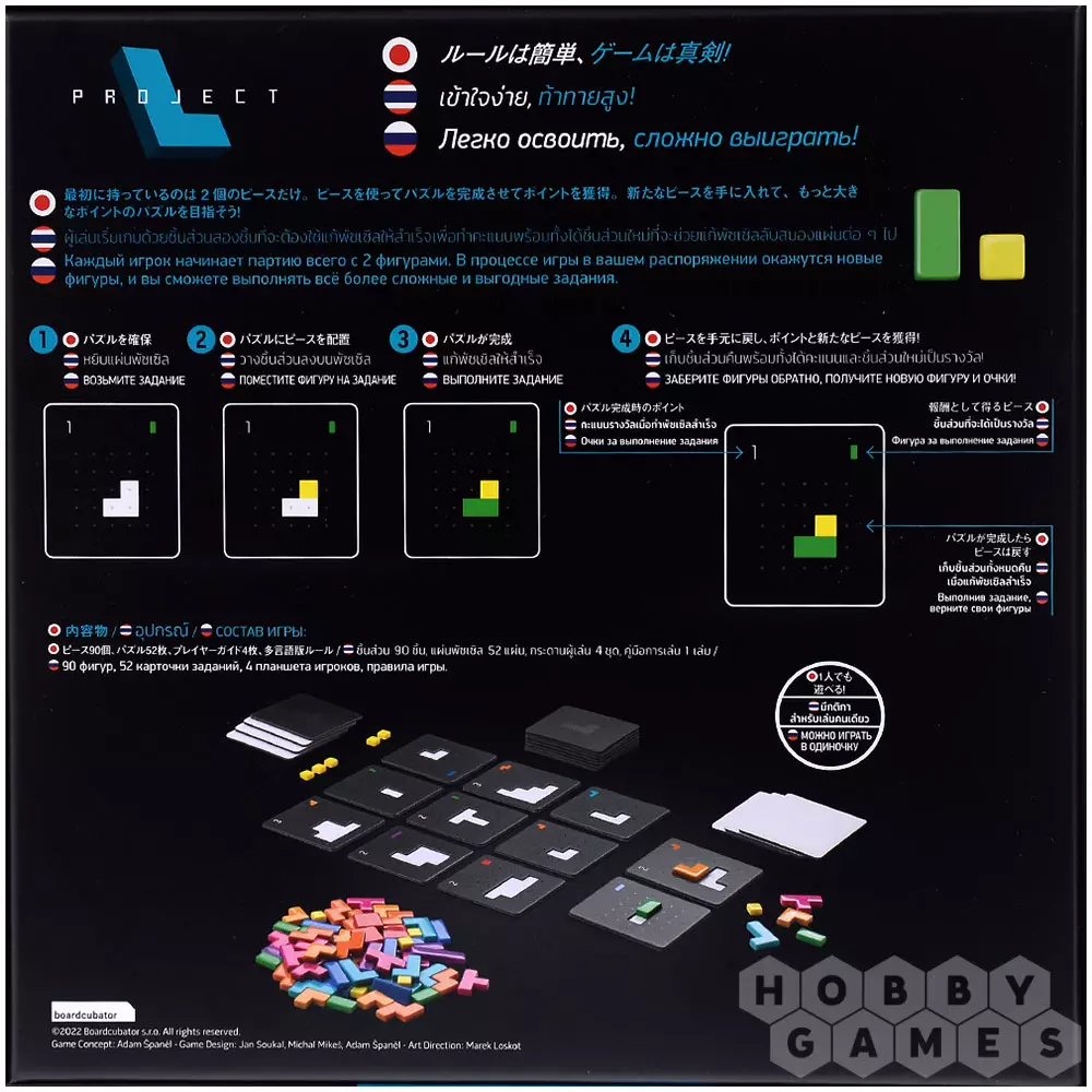 Погрузитесь в увлекательный мир абстрактных головоломок, где нужно заполнять карточки-задания фигурами разных форм. Начиная всего с двух фигур, вы будете постепенно расширять свои возможности, улучшать и обменивать их, стремясь создать эффективную систему для выполнения как можно большего числа заданий. Игра отличается простыми правилами, но при этом предлагает глубокий и насыщенный тактический геймплей, где каждое решение влияет на будущие ходы. Стильные двухслойные планшеты с углублениями и глянцевые пластиковые фигуры делают процесс не только интеллектуальным, но и эстетически приятным. "Проект L" идеально подойдёт любителям логических задач, которые ценят баланс между доступностью и глубиной. А ещё в эту настолку можно сыграть всей семьёй и совместить приятное с полезным: общение с развитием навыков! Так скорее же соберите свои идеальные комбинации и испытайте удовольствие от безупречно выполненного плана!