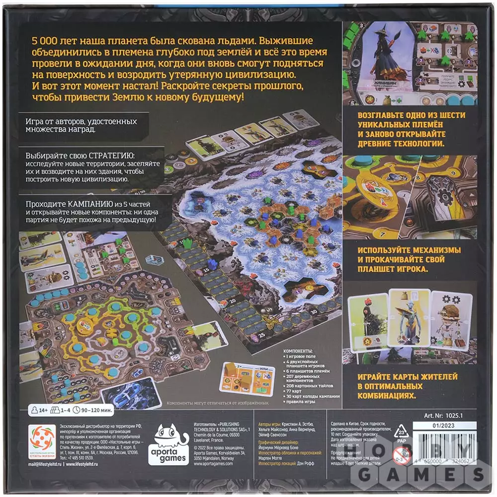 В начале игры участники получают колоды с соплеменниками и два планшета. На одном содержится информация об уникальных особенностях племени, другой же используется для размещения изученных механизмов и улучшения карт. Каждый ход можно совершать до двух действий. Можете исследовать неизведанные локации или заняться застройкой новоиспечённого города, лишь бы ресурсов хватило. Есть возможность впасть в состояние анабиоза, благодаря этому можно получить бесплатный ресурс и восстановить значения энергии. А ещё каждый ход вам позволяется совершить одно из двух действий, которые не расходуют очки хода, такие как обмен и использование механизма.