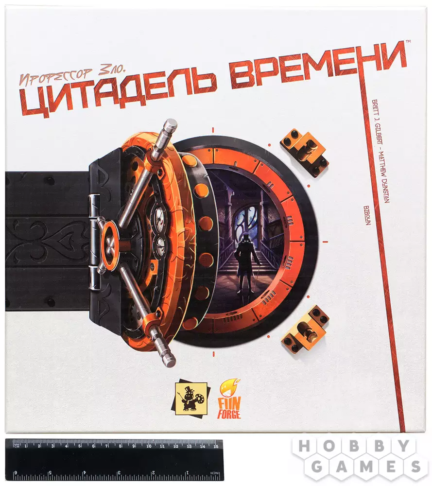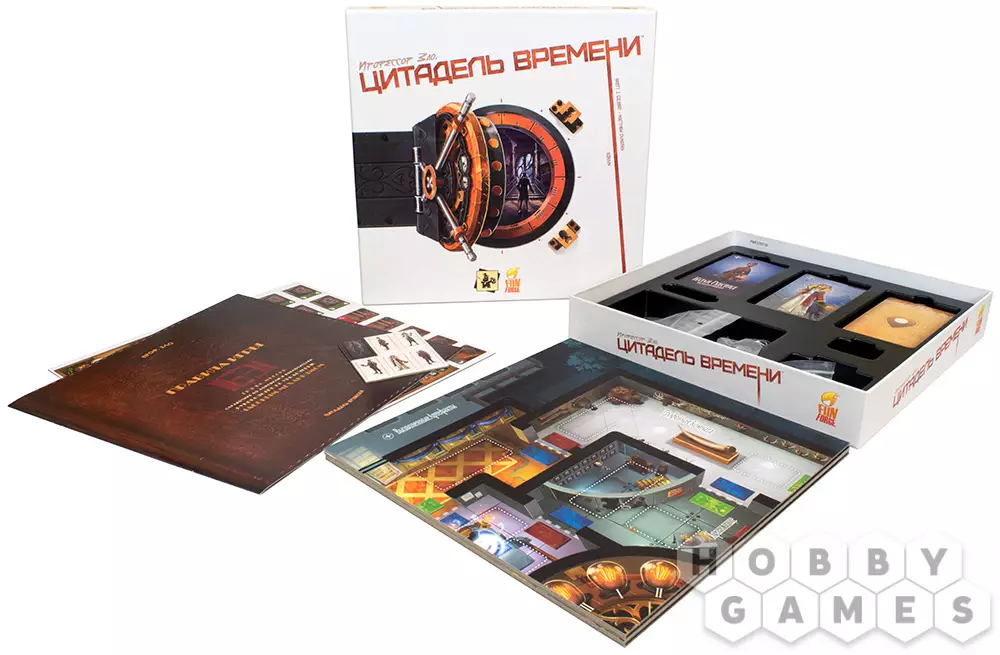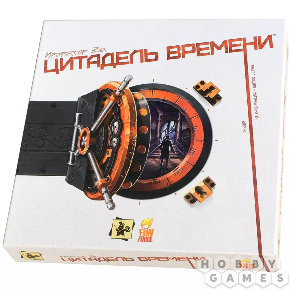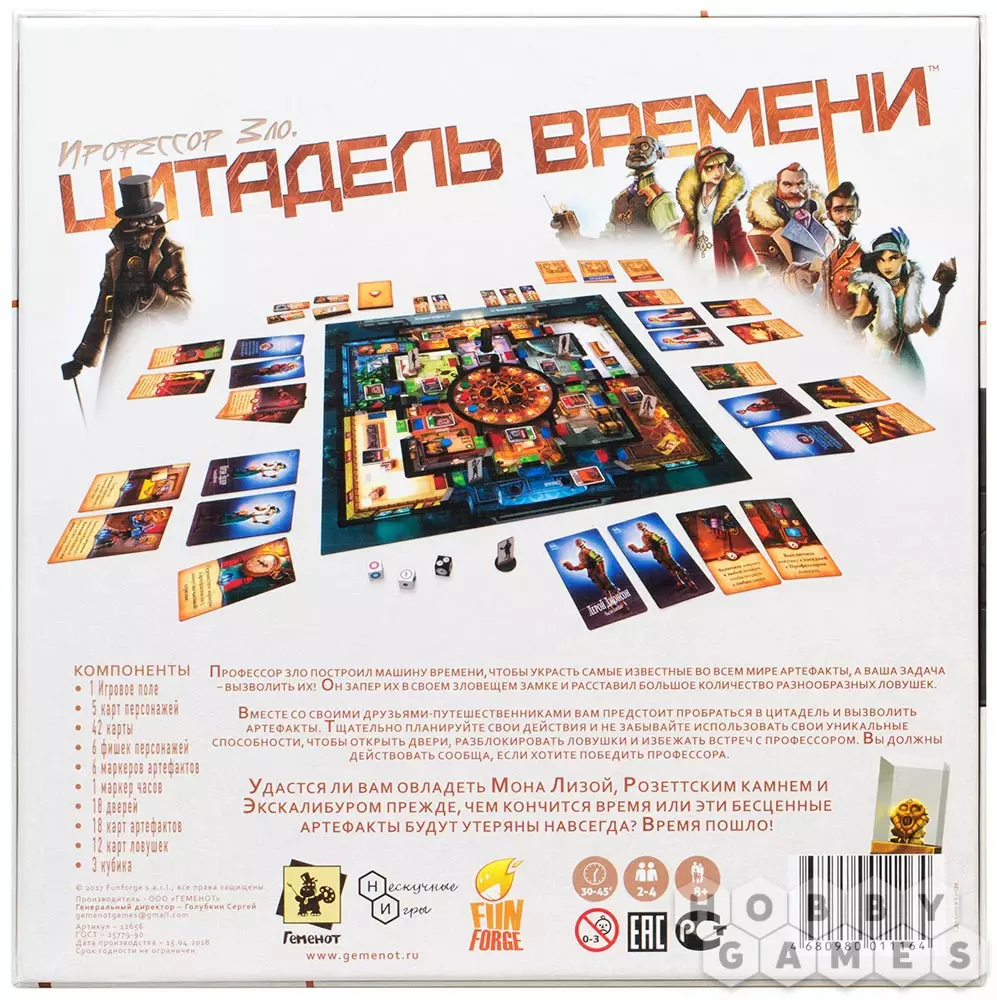 В настольной игре "Профессор Зло. Цитадель Времени" нехороший учёный изобрёл машину времени и теперь ворует знаменитые исторические ценности из прошлого и будущего. Ваша команда была выбрана, чтобы вломиться в тайное убежище Профессора Зла, конфисковать легендарные артефакты и вовремя вернуть их в соответствующую историческую эпоху. Вы готовы захватить сокровища?