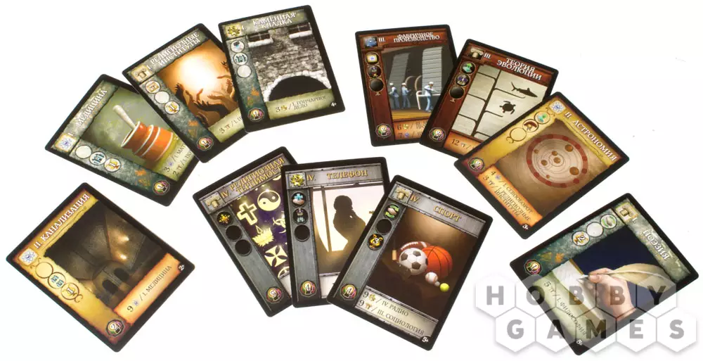 Перед вами одна из самых интересных и оригинальных настольных игр про науку, технику и цивилизацию в целом. С помощью интересных и не очень сложных механик обыгрывается мировое развитие в различных важнейших сферах жизни общества. Красивый дизайн, отличное исполнение карт и высокое качество компонентов порадуют настоящих ценителей-настольщиков. Игра крайне реиграбельна, в ней очень многое зависит от ваших личных решений, в неё можно играть одному или по дополнительным ускоренным правилам. Также вы можете добавить одно из трёх дополнений, какие-либо их сочетания или даже все три разом.