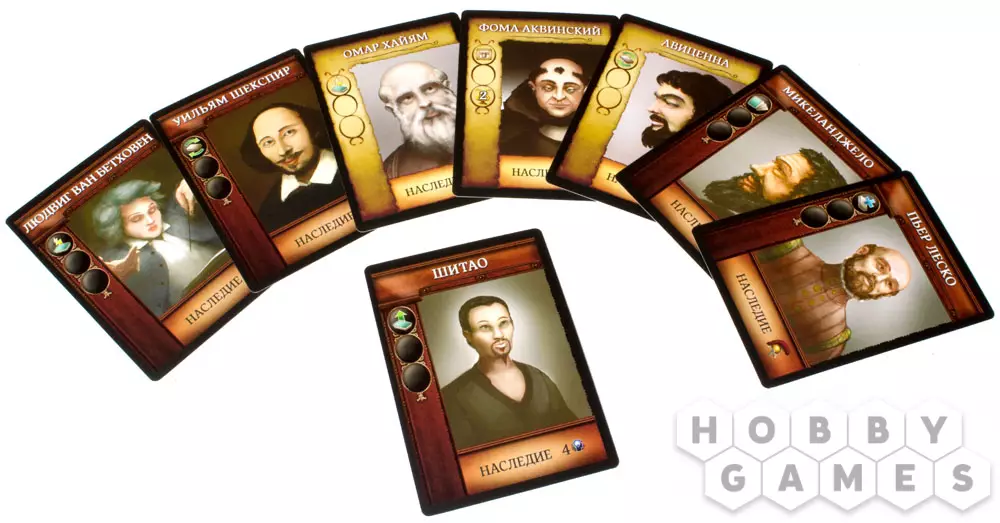 Настольная игра "Прогресс" содержит дополнения "Личности", "Достижения" и "Промышленная революция" – всего 86 дополнительных карт.