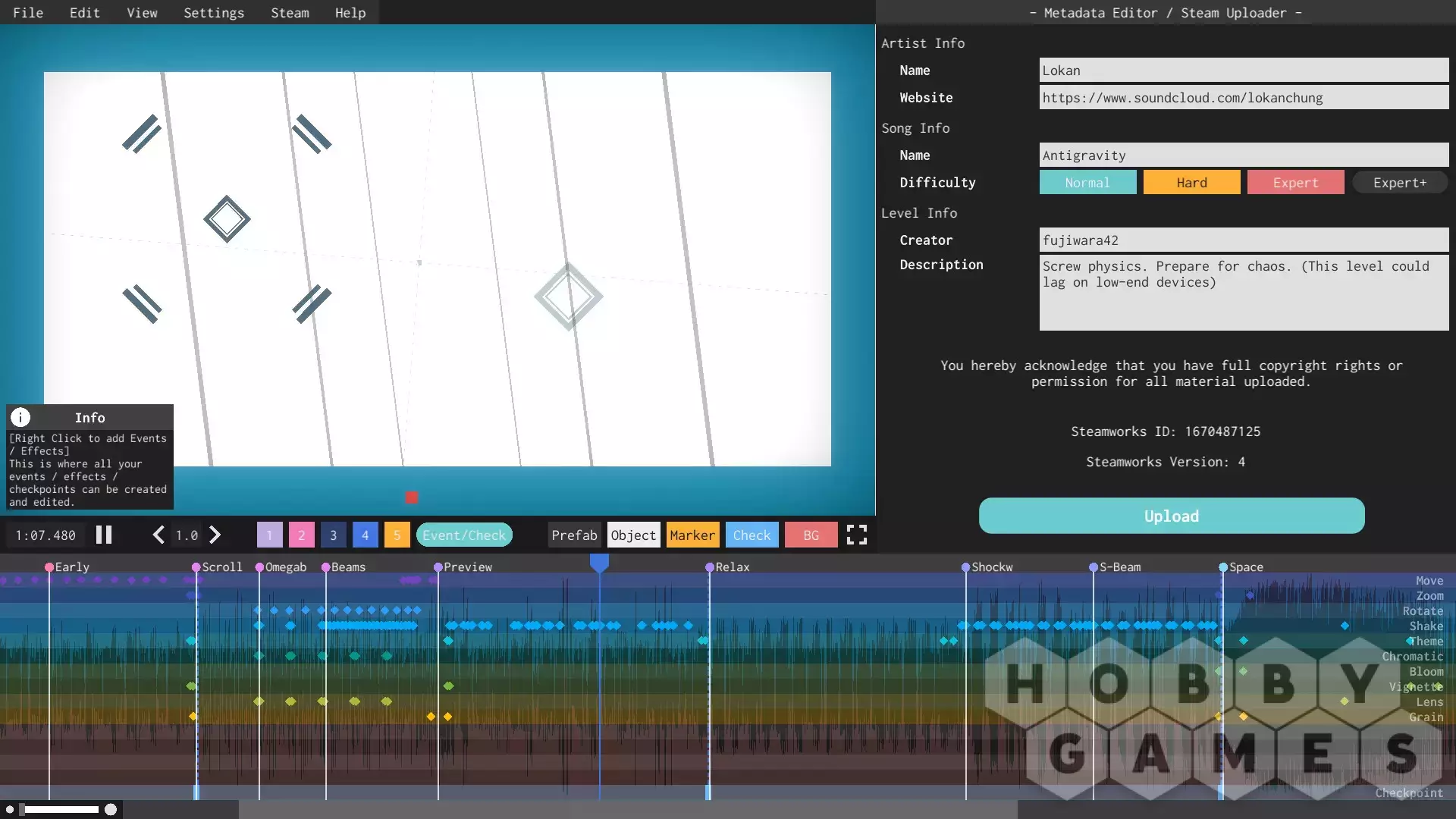 - Надежный редактор уровней. Тщательно разработанный редактор уровней позволяет пользователям создавать свои собственные уровни и испытания под любую музыку, которую они пожелают