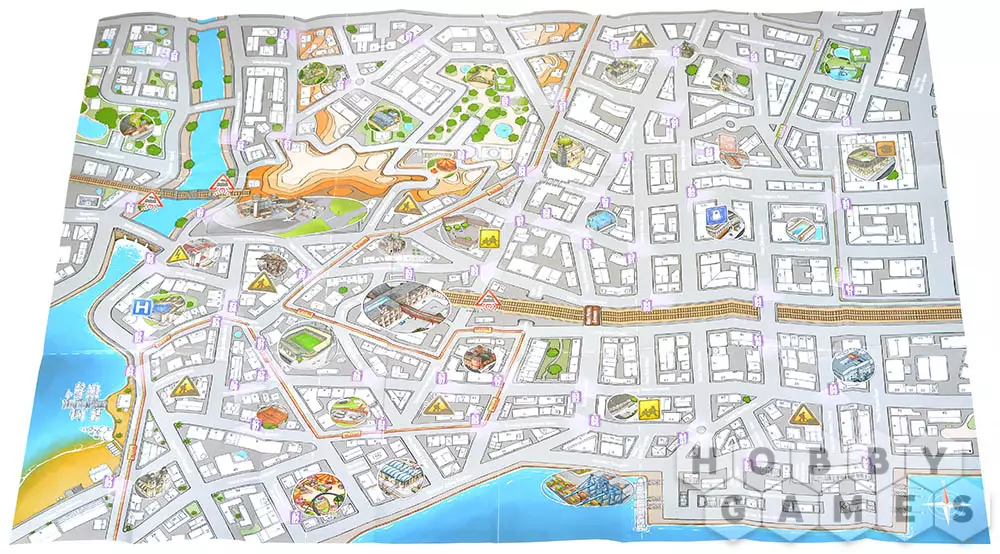 Сначала выберите в мобильном приложении "Прослушка" дело, которое хотите раскрыть. Затем поместите карту города в центре стола, рядом положите колоду видеонаблюдения и возьмите из коробки досье, соответствующее выбранному делу. Когда будете готовы начинать, запустите аудиозапись в приложении.
