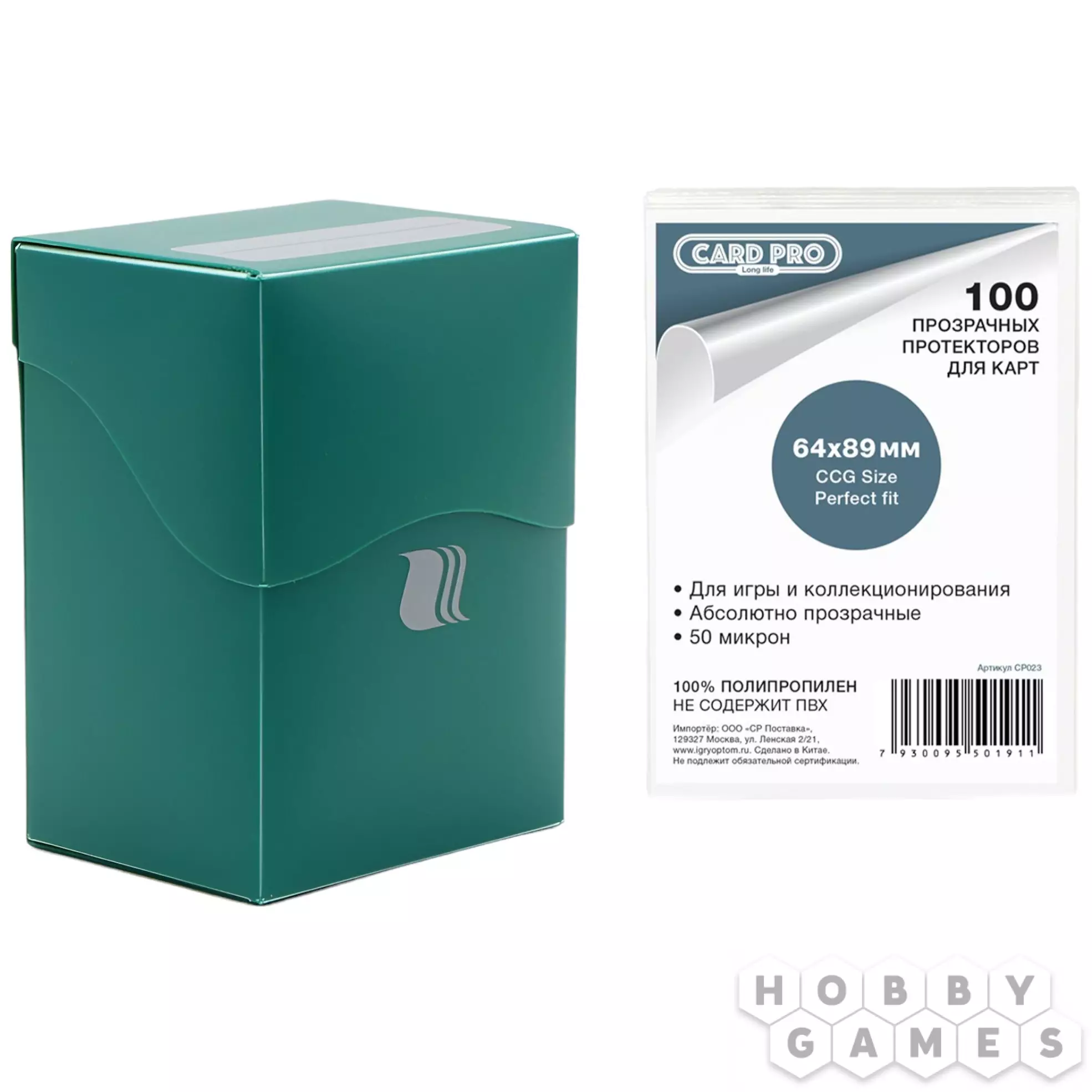 В этом комплкете вы найдёте не только прозрачные протекторы размером 64x89 мм и плотностью 50 микрон, но и не менее полезный атрибут для хранения карт – бокс. Это прочная коробочка из полипропилена, предназначенная для карт размера Standard. Она вмещает до 100 карт в протекторах или до 80 карт в двойных протекторах.