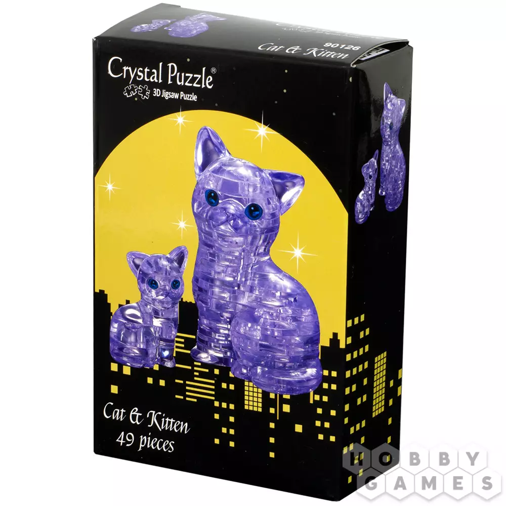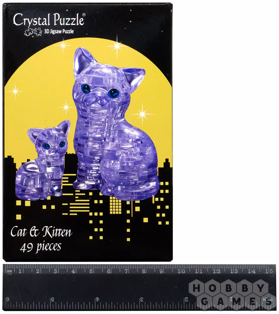 3D-пазл включает в себя 39 прозрачных деталей. Композиция состоит из милой кошечки и её детёныша, сидящих рядом. За счёт прозрачного материала объект пропускает через себя лучи, создавая эффект подсветки. Эта головоломка станет отличным подарком для детей и взрослых, ведь развивать пространственное мышление полезно во всех возрастах!