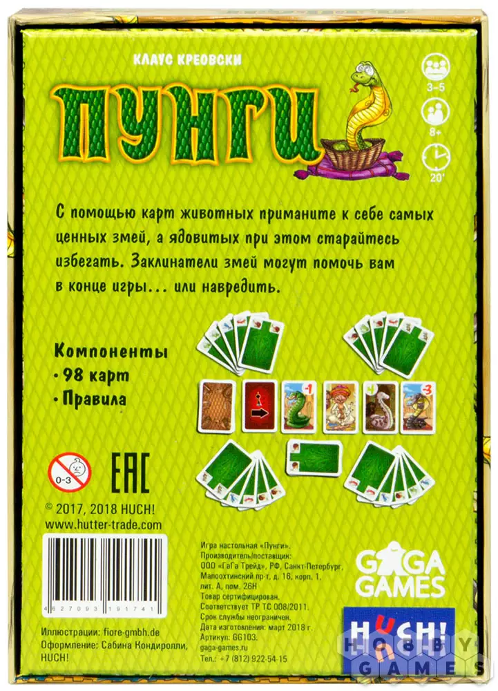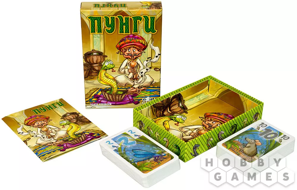 Пунги – это деревянный духовой музыкальный инструмент. Проще говоря, это такая дудочка, популярная в Индии, именно на ней играют факиры, гипнотизируя и заклиная ядовитых змей. В этой одноимённой настольной игре вам предстоит стать таким заклинателем змей и посоревноваться с другими игроками в своём мастерстве.