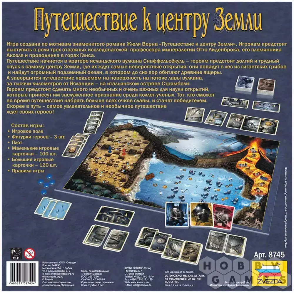 "Путешествие к центру Земли" – это атмосферная настольная игра, вдохновлённая знаменитым и многими любимым романом Жюля Верна с аналогичным названием. Вас ждёт насыщенное приключение, полное неожиданных событий, открытий и впечатляющих находок. Игроки выступают в роли смелых исследователей, которые стремятся оставить след в истории и заработать как можно больше очков славы. Яркое оформление, качественные компоненты и многослойный сюжет делают каждую партию настоящим путешествием – вглубь, к сердцу планеты!