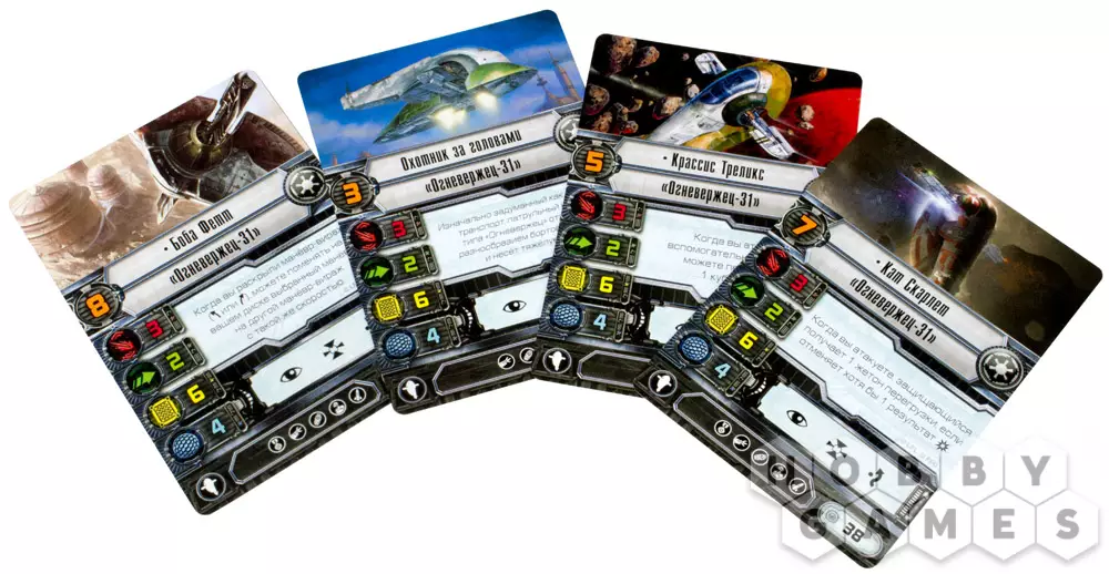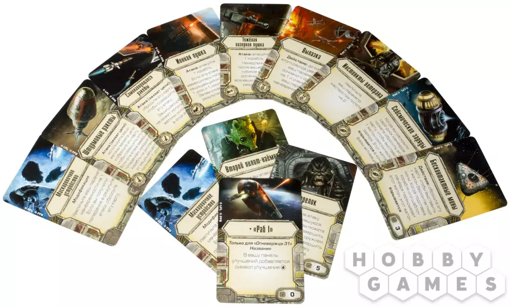 Игроки в «X-wing» смогут оснастить «Огневержца» самым разнообразным оружием и пустить в ход множество трюков. В расширении «Раб-1» 13 карт улучшений и 4 карты пилотов, каждая из которых содержит по меньшей мере 4 символа на панели улучшений. А карта названия «Раб-1» добавит еще одно улучшение в панель. Кто-то может подумать, что без улучшений, пушек и ракет этот корабль ни на что не годен. Но это совсем не так.