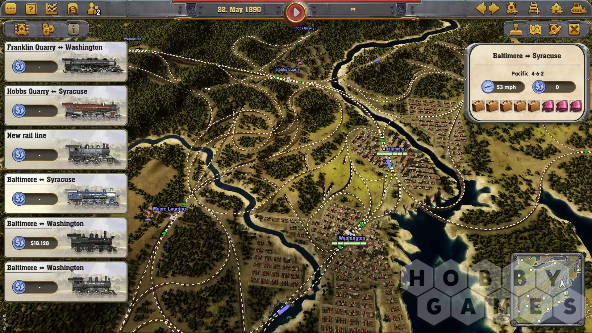 - Take advantage of the strengths and weaknesses of more than 80 historically accurate locomotives and assign them to your rail routes