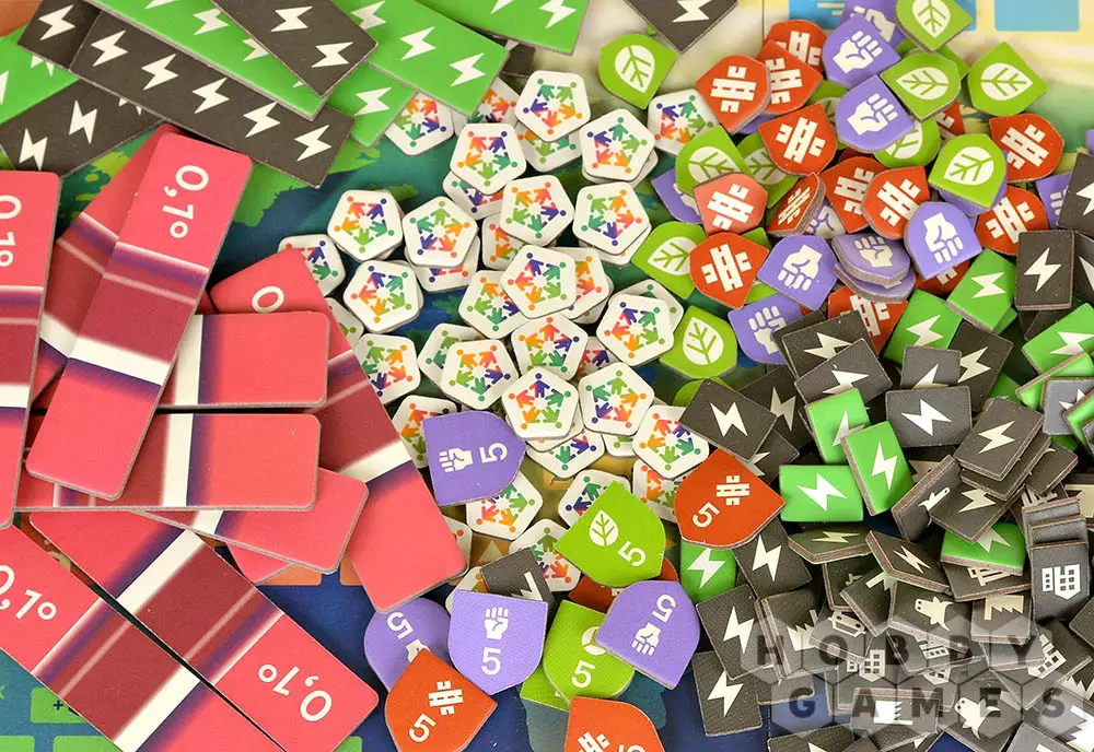 Партия состоит из последовательных раундов, где игроки действуют одновременно, проходя пять ключевых этапов. В глобальной фазе вы вместе решаете, какие проекты реализовать, и обсуждаете надвигающийся кризис. Затем следует локальная фаза, в которой каждый управляет своей державой: разыгрывает карты, создаёт устойчивую инфраструктуру, внедряет чистую энергию и даже помогает союзникам – ведь цели у вас общие.