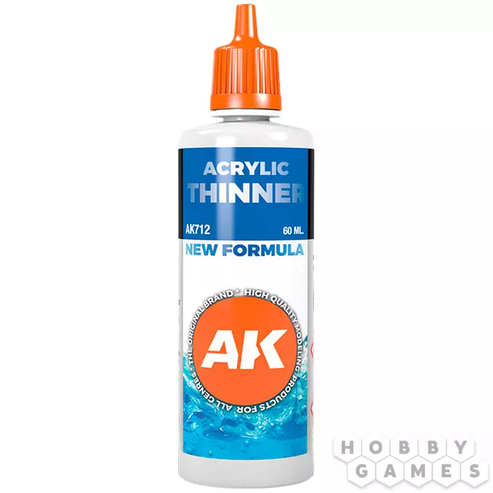 Acrylic Thinner от AK Interactive – растворитель высокого качества, предназначенный для работы с акриловыми красками. Он отлично подходит для аэрографов: предотвращает скапливание и высыхание краски. А также подходит для работы с обычными кистями – используйте растворитель, чтобы сделать слой краски тоньше.