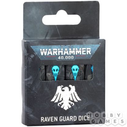 В наборе Raven Guard представлено шестнадцать шестигранных игральных кубиков из перламутрового чёрного акрила с голубоватыми символами. Точки на гранях от 1 до 5 выполнены в классическом стиле. На стороне с цифрой 6 нанесён знак в виде черепа ворона.