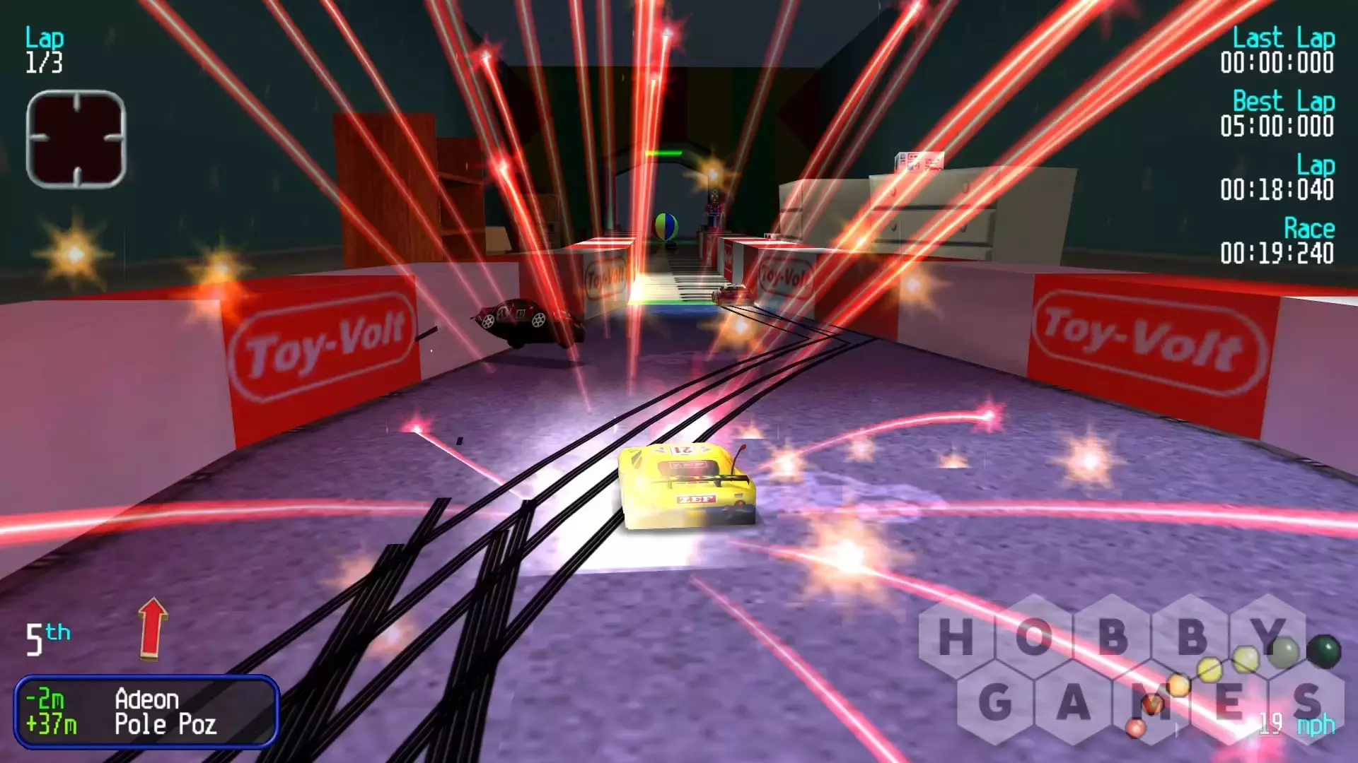 В игре Re-Volt вам предстоит провести одну из 28 машин на дистанционном управлении по безумным гоночным трассам, расположенным в необычных условиях. Поскольку машинки размером с настоящие пульты дистанционного управления, предметы, встречающиеся на трассе, становятся больше, чем в жизни. Бордюры становятся огромными стенами, игрушки - препятствиями, и все - честная игра, по которой можно проехать, пройти или преодолеть.