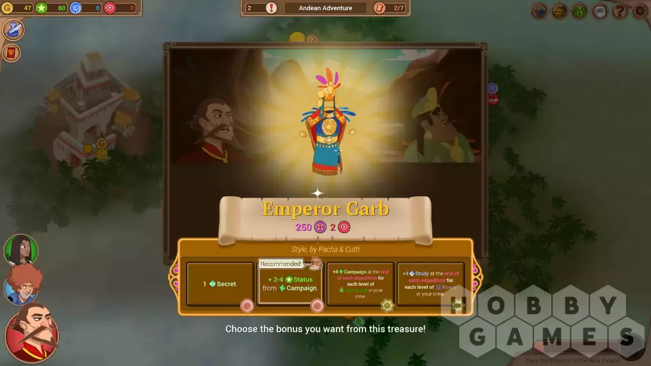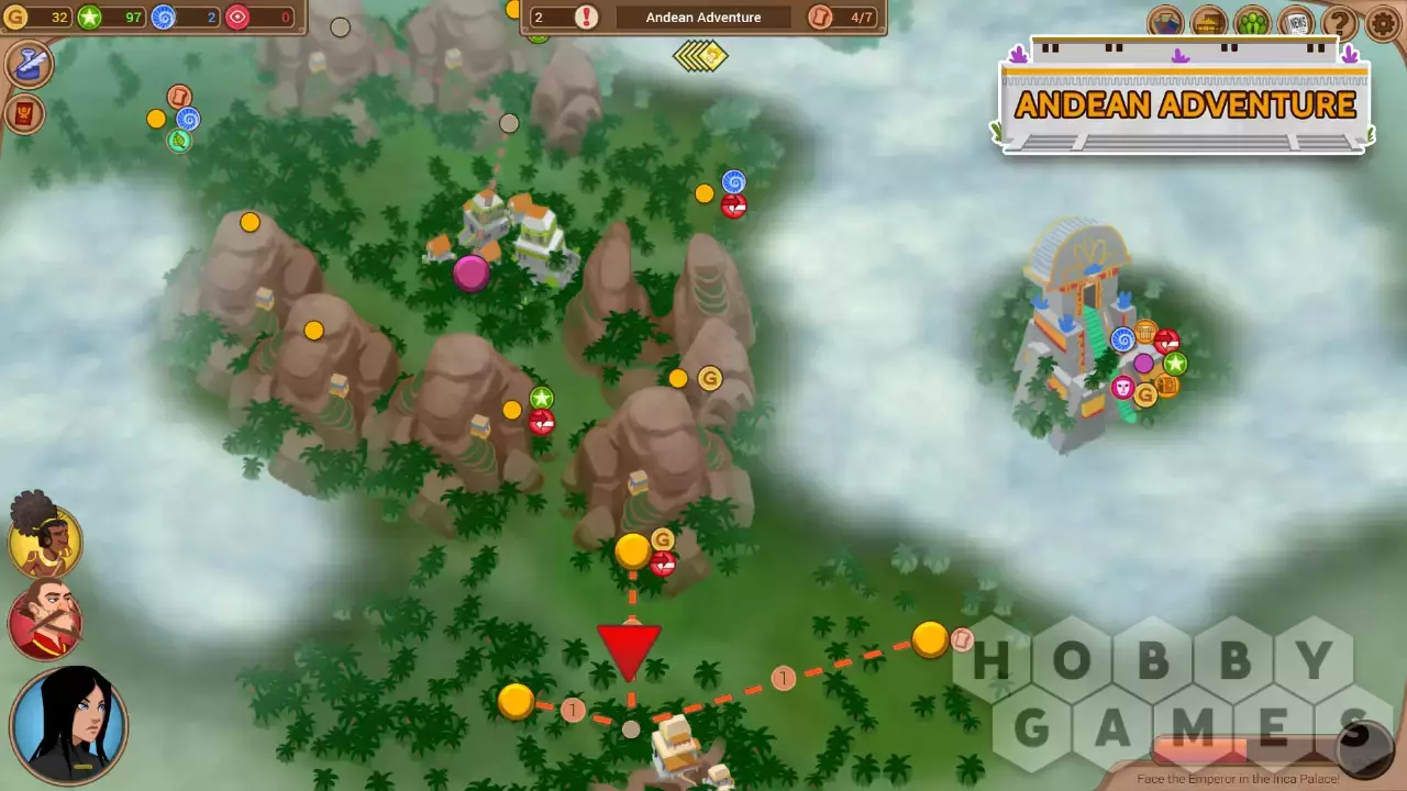 «Приключение в Андах»: экспедиция сложностью в 3 звезды. Отправляйтесь в горы, где некогда жили инки, разыщите бесценное сокровище и помогите городам избавиться от гнета жестокого императора. Если вы готовы расстаться с деньгами, лама-экспресс мгновенно доставит вас в другую точку карты.