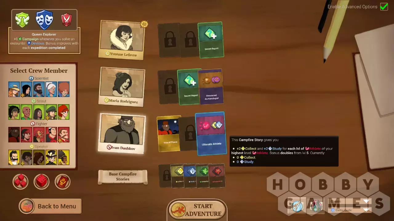 Разыгрывая новые карты истории команды, вы сможете дополнить свои приключения новыми сюжетными линиями, которые позволят раскрыть прошлое членов отряда и помогут вашим персонажам сдружиться. Позвольте Анне продемонстрировать страшную силу науки, помогите Ивану защищать свои принципы и решите, кому вскружит голову Мария. Каждая ваша команда будет уникальна!