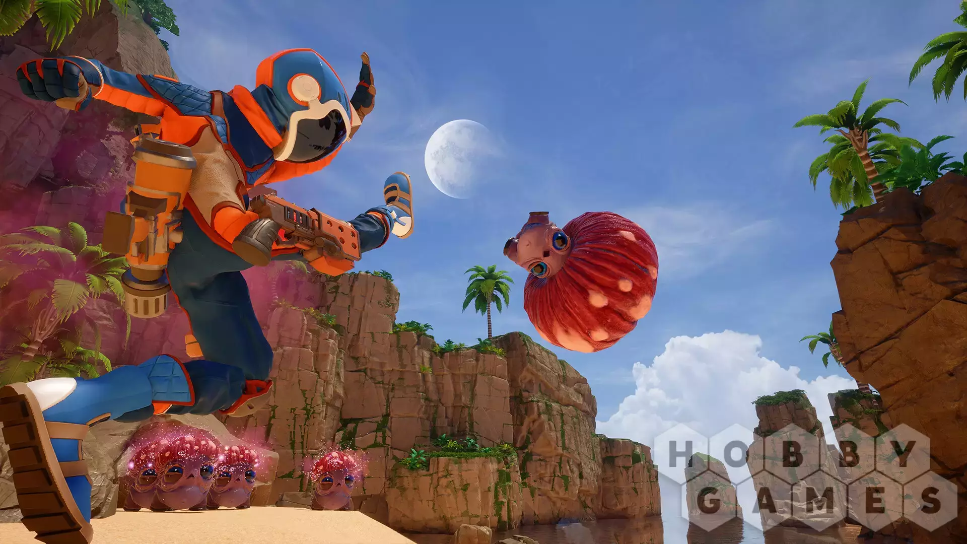 Четыре больших, ярких мира для исследования, каждый со своими странными и замечательными растениями и существами. Сканируйте все, каталогизируйте все и проводите эксперименты, чтобы повысить свой уровень науки... который открывает захватывающее новое снаряжение! Плюс... планет может быть больше четырех. Возможно.