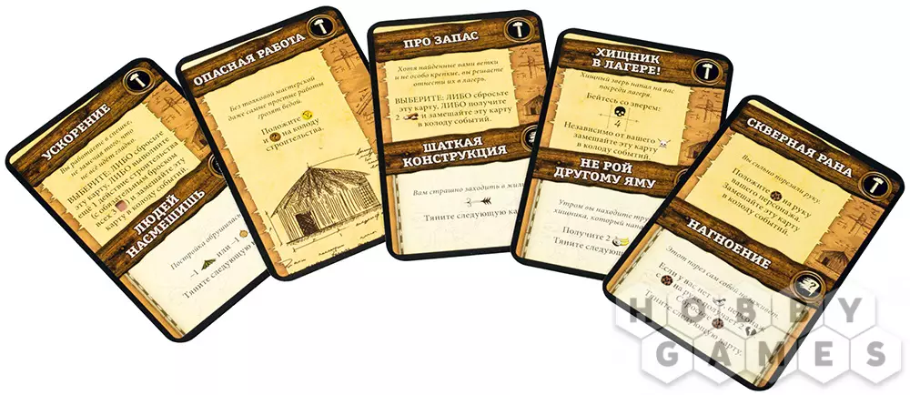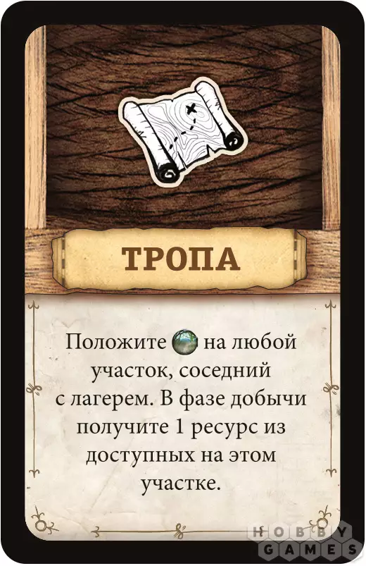 - Фаза добычи – игроки получаются ресурсы с участка, где расположен лагерь, поэтому стоит хорошенько обдумывать, где вы остановитесь на очередной ночлег