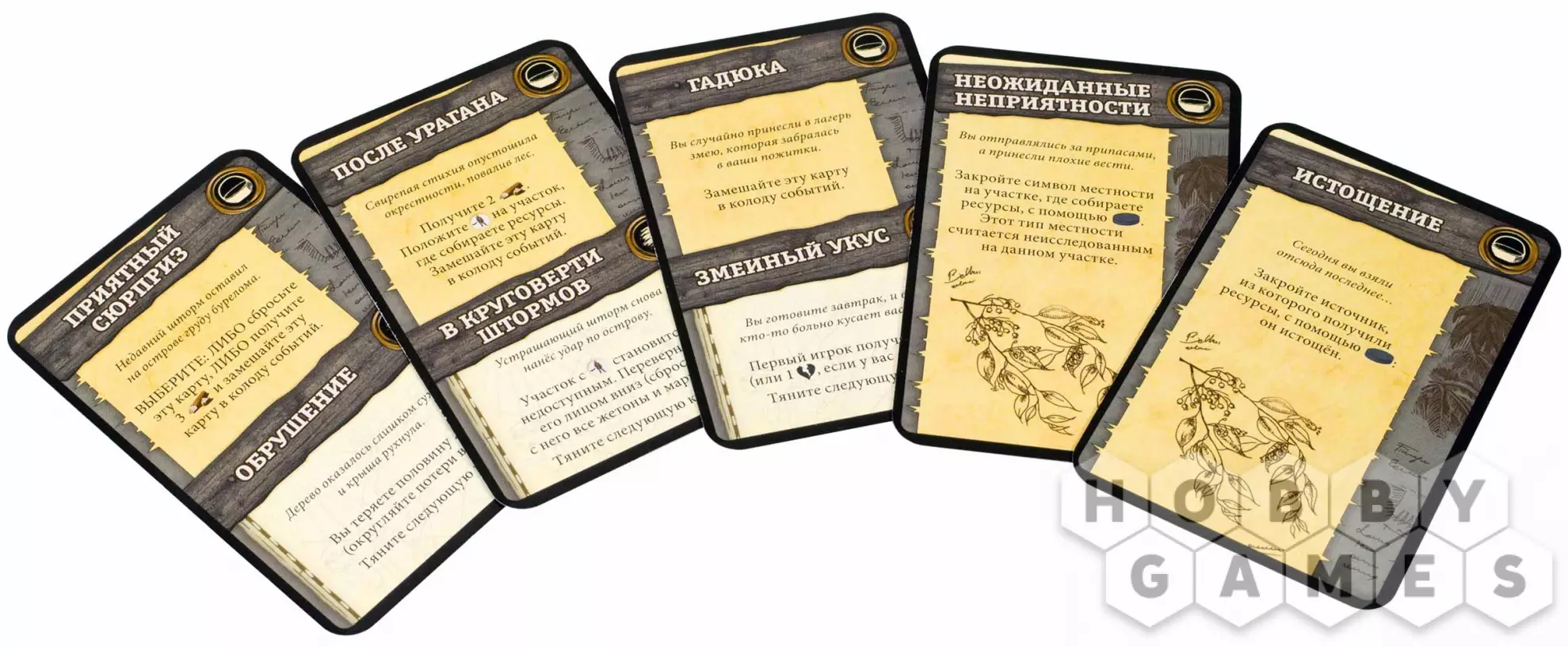 Замятина25.11.2022 20:25Поздравляю! Вы смотрите на очень классную настольную игру! В ней большая свобода действий: можно создавать предметы, строить шалаши, охотиться на диких зверей, шариться по острову и собирать бананы в соседних зарослях. Вы станете самым крутым выживальщиком! Но... Шалаш обрушился - получите рану. Дикий зверь сломал частокол - получите рану. Бананы сгнили - получите рану. Эта игра будет делать вам больно сотней разных способов, а когда вы подготовитесь ко всем, она найдет сто первый, который вас добъёт. И вы захотите отыграться. И начнете игру заново. Большой выбор событий и приключений обеспечит вам высокую реиграбельность и кучу новых сюрпризов. Все ваши выживанию будут 100% интересными. Удачи на острове!