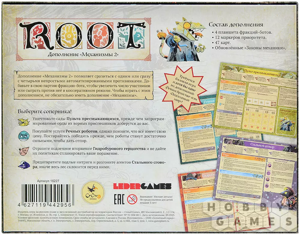 Внимание! Это дополнение. Для игры вам понадобится базовая версия Root, а также компоненты из дополнений "Root: Речное братство" и "Root: Подземный мир".