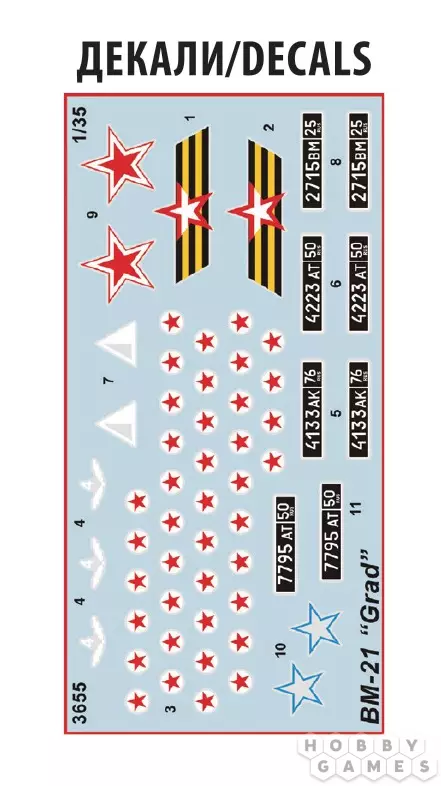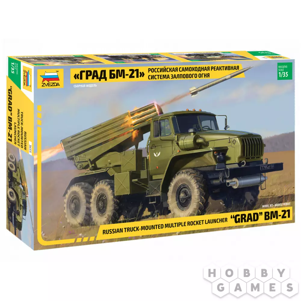Данная сборная модель воспроизводит детализированный внешний вид БМ-21 "Град" и подойдёт как для коллекционеров, так и для любителей моделизма. Набор деталей выполнен из высококачественного пластика и позволяет собрать точную копию знаменитой машины."