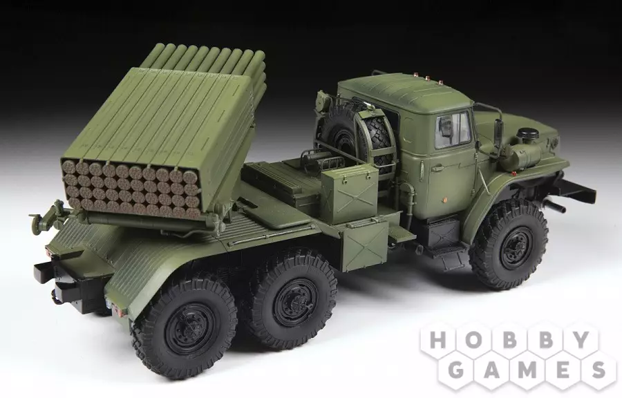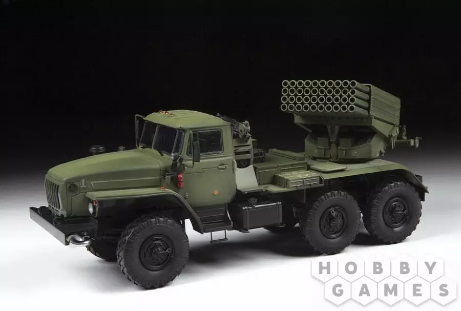 "Град" – легендарная реактивная система залпового огня, созданная в СССР и поступившая в применение армии в 1963 году. Её основное предназначение – уничтожение техники, укреплённых позиций врага и живой силы. Модернизированная версия, построенная на базе автомобиля Урал-4320, отличается улучшенной мобильностью и проходимостью в любых условиях. РСЗО оснащена автоматизированным управлением огнём, приборами навигации и средствами подготовки и пуска ракет.