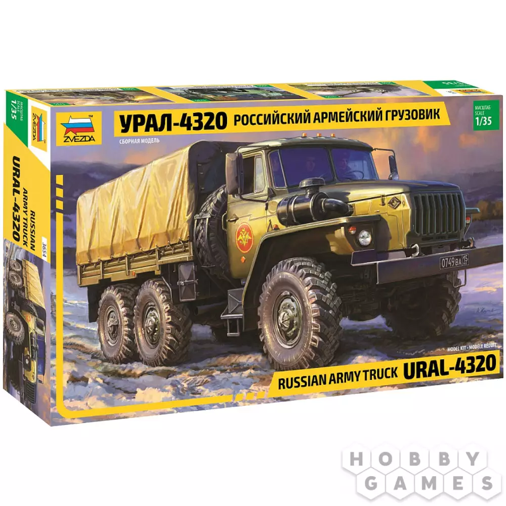 Набор включает детали для сборки модели Урал-4320, подходящей для моделистов любого уровня.