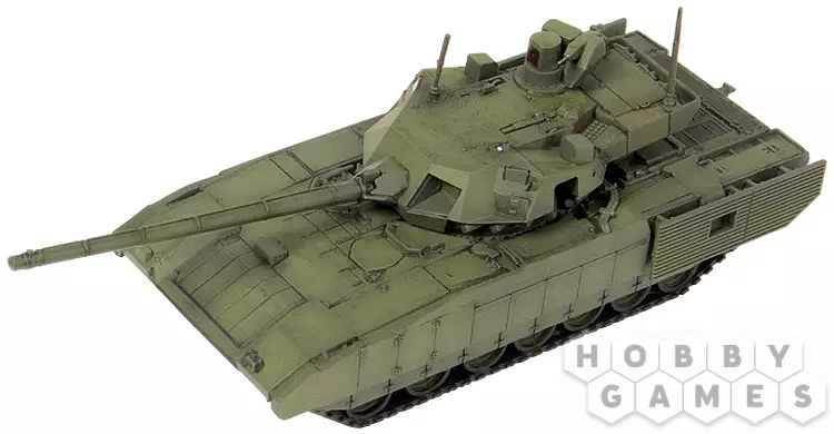 Основной боевой танк Т-14 "Армата" относится к перспективному поколению российской бронетехники. Принципиальным отличием машины является размещение всего экипажа в специальной изолированной бронекапсуле, встроенной в корпус, в то время как башенная часть является необитаемой. Машина оснащена комплексом средств обороны нового поколения, включающим систему активной защиты "Афганит" и динамическую броню "Малахит". Вооружение представлено мощной 125-мм гладкоствольной пушкой, а также пулемётом калибра 12,7 мм марки "Корд".