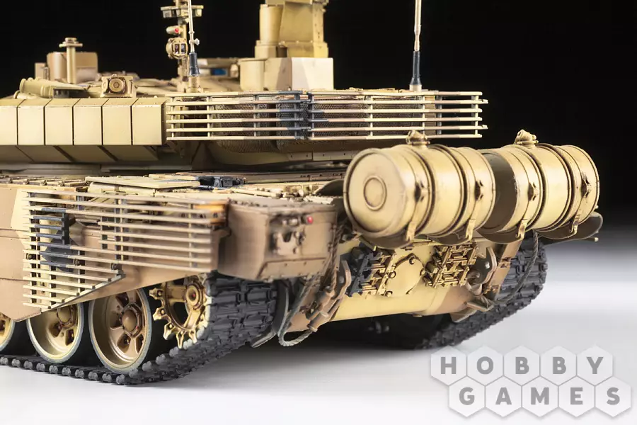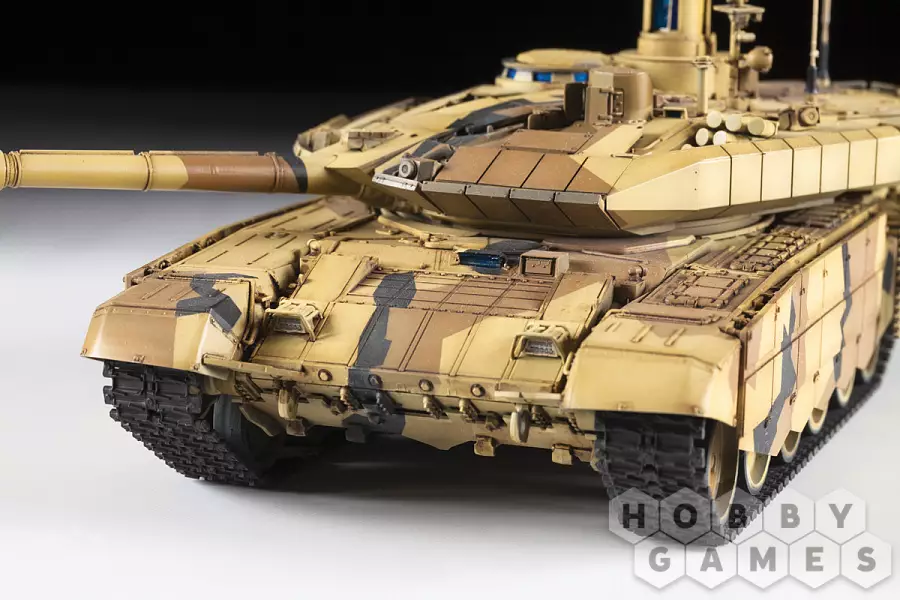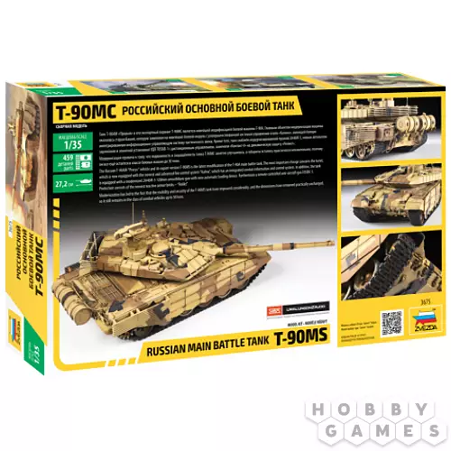 Сборная модель российского основного боевого танка Т-90МС – одной из самых современных версий танков Т-90. Впервые продемонстрированная в 2009 году, модель Т-90МС "Тагил" с новой башней привлекла внимание своей усовершенствованной конструкцией. Модернизация включала улучшения в броневой защите, системах управления огнём, а также в подвеске и двигателе, что значительно повысило маневренность и боевые характеристики машины.