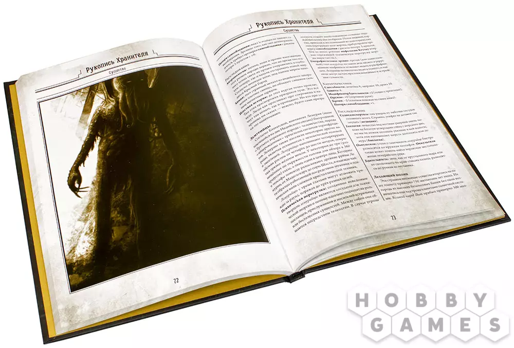 Рукопись Хранителя – это книга ведущего, где во всех подробностях рассказывается о Великих Древних, их порождениях и чудовищных монстрах. Также книга предлагает основы для сюжетов остросюжетных приключений - локации, организации, персонажи и фабулы.