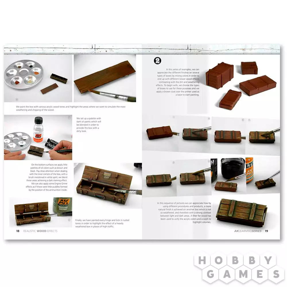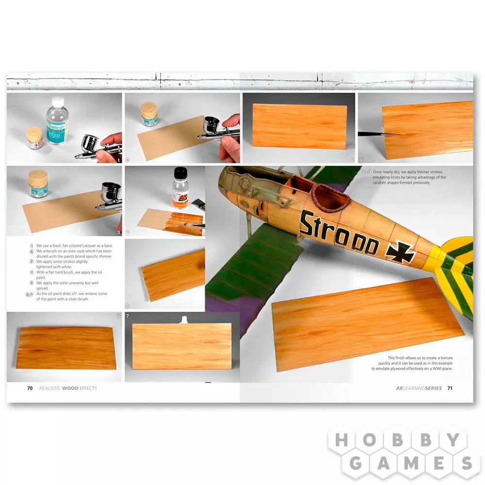 Первый выпуск руководств по покрасу из серии AK Learning посвящён окрашиванию различных пород дерева, самолетов, кораблей, инструментов, аксессуаров и т.д. В нём представлены необходимые техники для всех видов моделистов. На страницах этого руководства вы узнаете, как работать с несколькими продуктами для получения различных видов отделки древесины. Это незаменимый инструмент для начинающих и продвинутых моделистов.