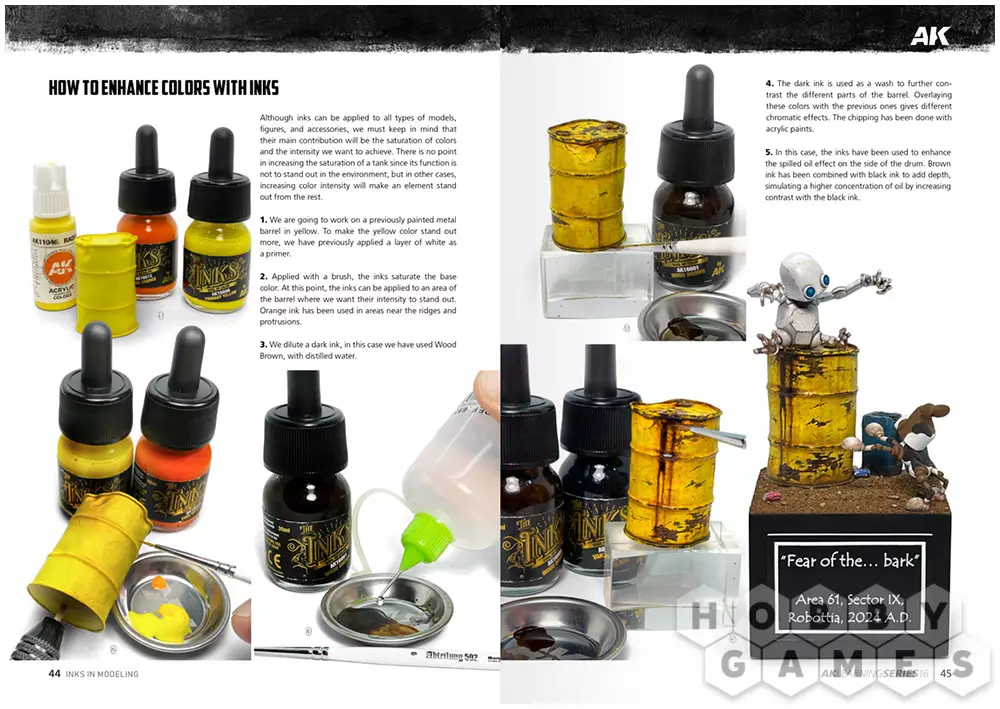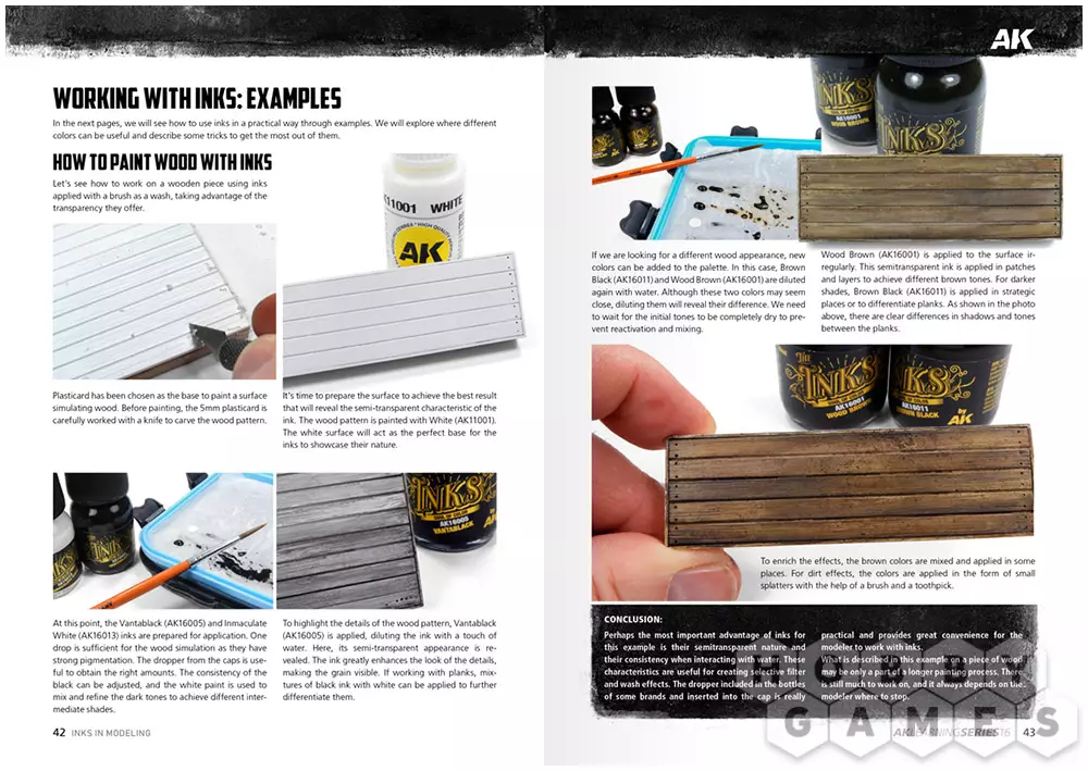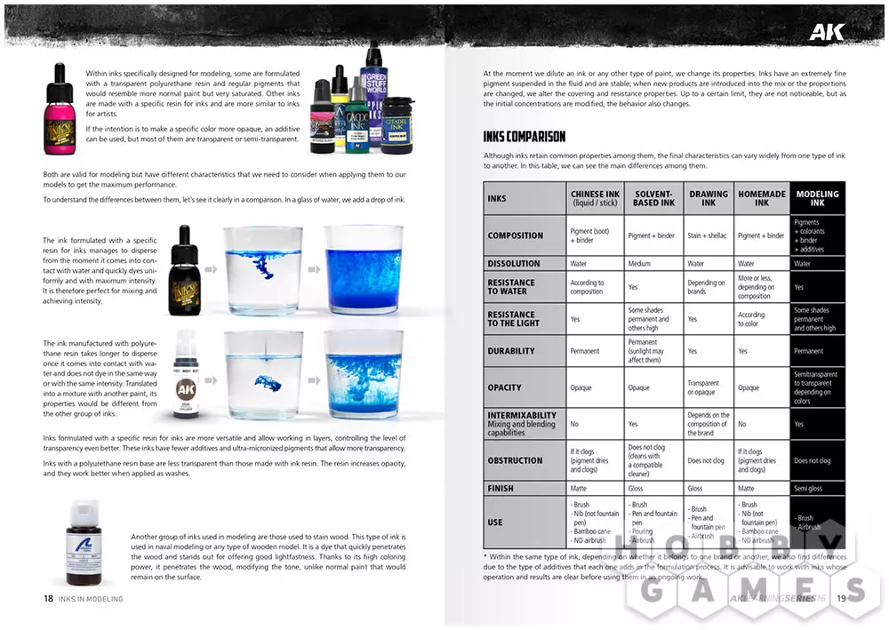 В 16 выпуске AK Learning подробно показано, как понять особенности данного типа красок и адаптировать их под различные задачи. Руководство наглядно демонстрирует применение чернил для улучшения финишного результата при работе с фигурками и миниатюрами, а также в других направлениях моделизма.