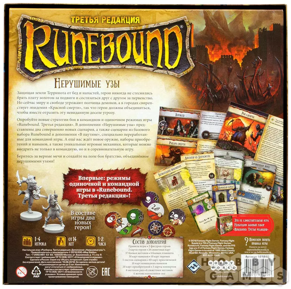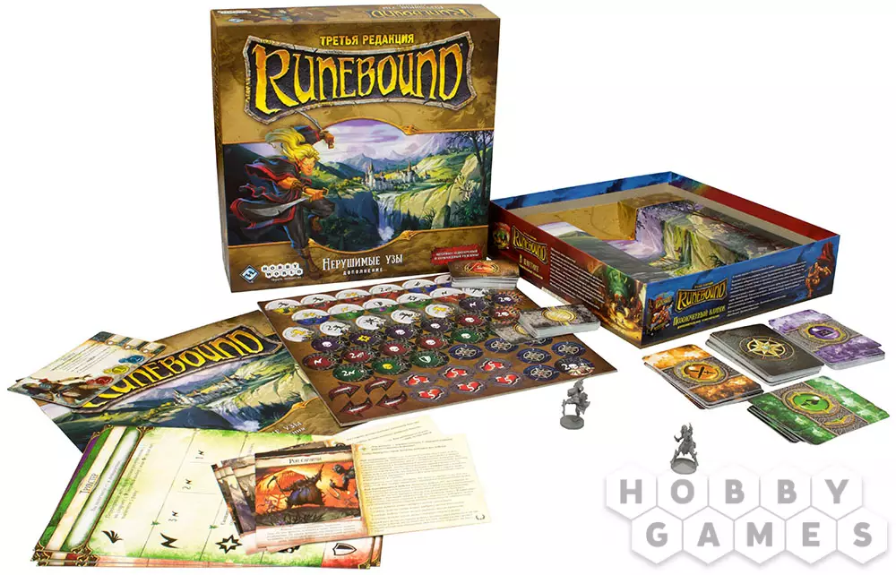 Настольная игра Runebound – настольное приключение в жанре фэнтези для 1-4 игроков, которые смогут отправиться в сказочный мир, полный опасностей и приключений. Путешествуйте по течению бушующих рек, исследуйте тёмные и таинственные леса, сражайтесь со всевозможными монстрами, которые осмелятся помешать вам достигнуть главной цели приключения! В испытаниях вам будут помогать опытные союзники и зачарованные артефакты. Вы встретите коварных злодеев и не раз окажетесь в смертельной опасности. Сумейте с честью преодолеть все преграды на пути к своей цели!