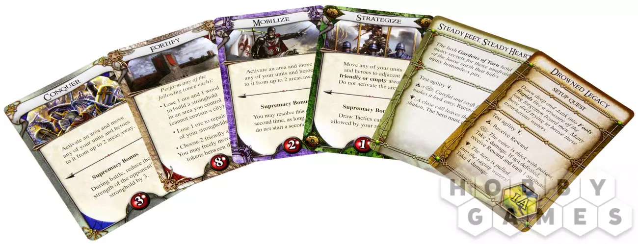 «Runewars» – это стратегическая настольная игра, действие которой происходит в мире Терринот. Она поражает своей красотой и масштабностью. В нее могут играть от 2 до 4 игроков, их цель – сражаться за обладание шестью рунами дракона и обретение безграничного могущества. В этом удивительном мире игрок может собрать свою собственную армию, окунуться в сферу торговли и дипломатии, в то время как его верные воины атакуют оппонента. Игра дает возможность управлять своими героями и армиями на огромной красочной карте с качественно выполненными игровыми компонентами и объемными элементами рельефа. Игрок может накапливать ресурсы и атаковать вражеские крепости для захвата новых территорий.