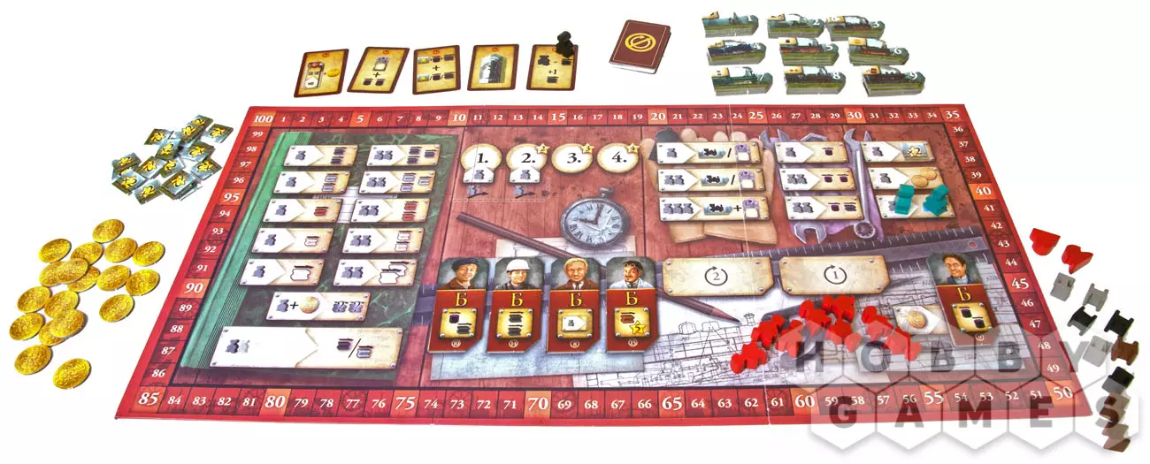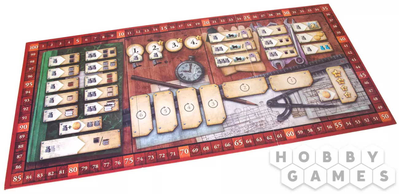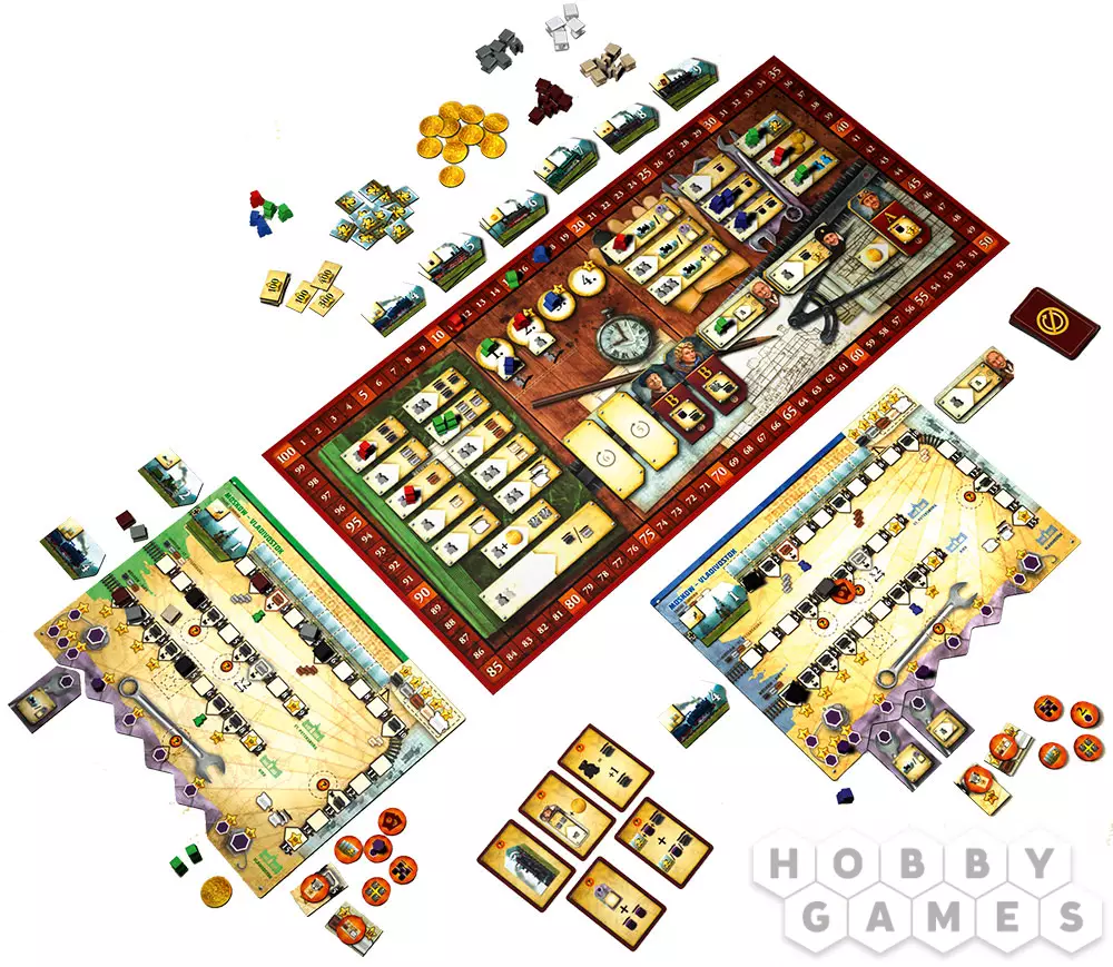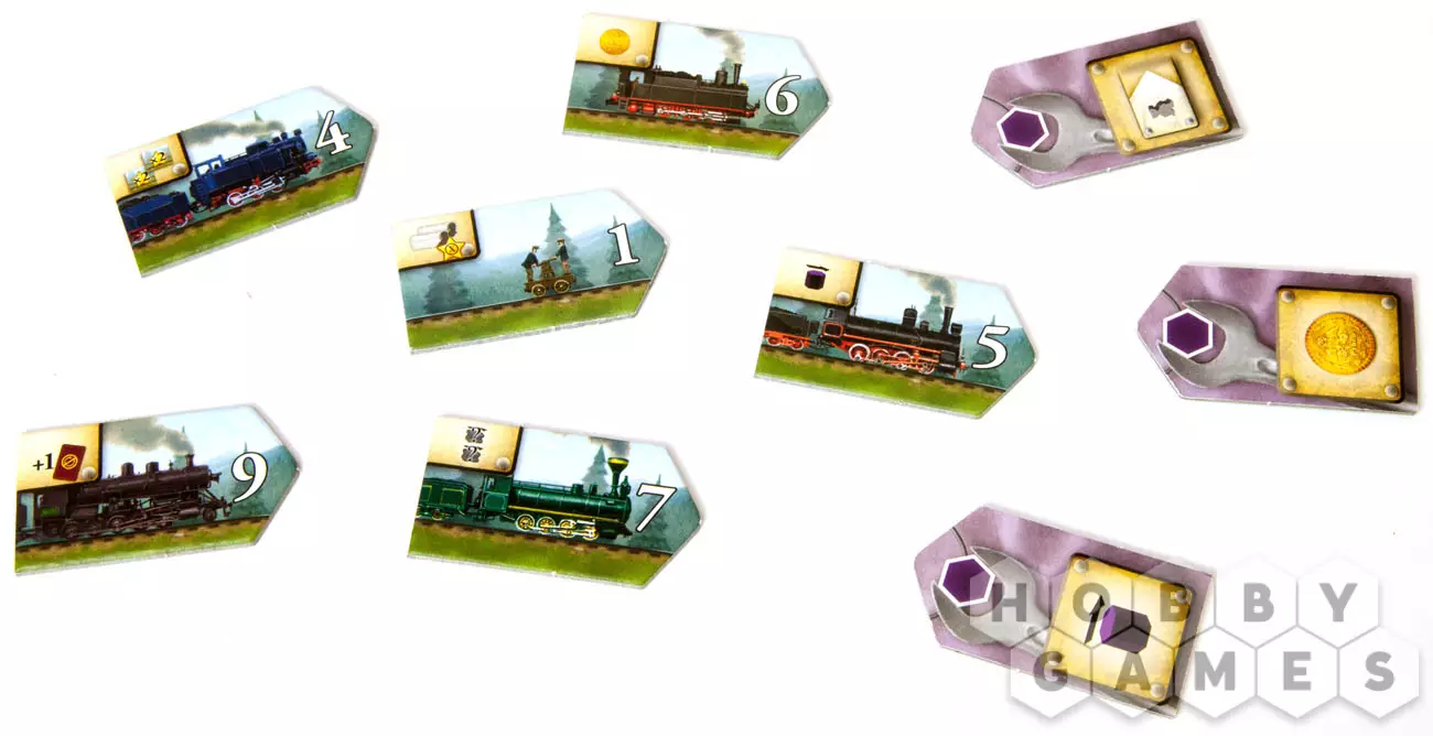 Участок Локомотивов и Промышленности – на построенную железную дорогу вы можете смело ставить поезд; чем дальше доедет ваш Локомотив, тем больше очков вы получите. Завод – это важнейший инструмент развития транспортной системы, который открывает вам уникальные возможности