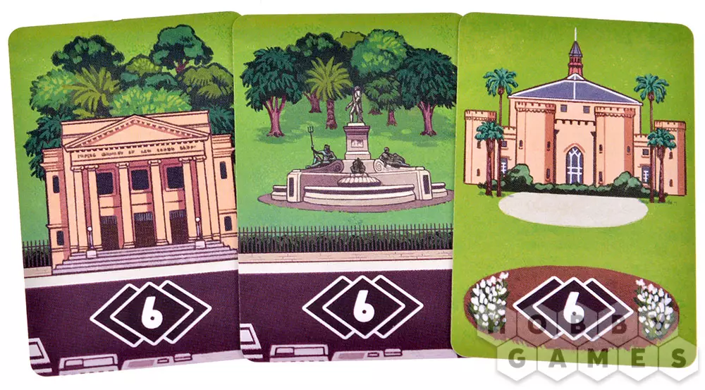 Когда карта выложена, вы передвигаете по растущему маршруту фигурку посетителя и получаете очки в зависимости от того, насколько интересным был путь! Особенно занятно, что карты достопримечательностей вдохновлены реальными объектами – в игре вы найдёте и легендарный оперный театр, и Сиднейскую консерваторию, и Государственную библиотеку, и Сиднейскую телебашню (самое высокое сооружение города!), и многое другое: взять хотя бы форт Денисон – крепость, что была построена аж в начале XIX века.