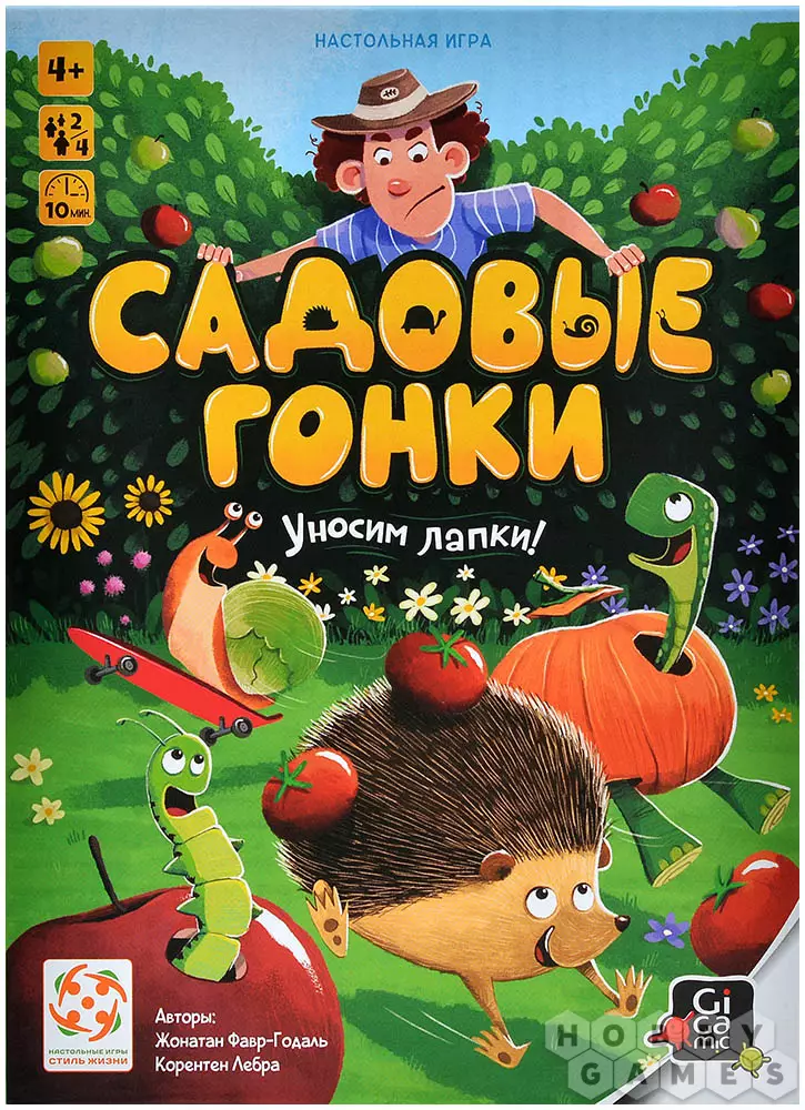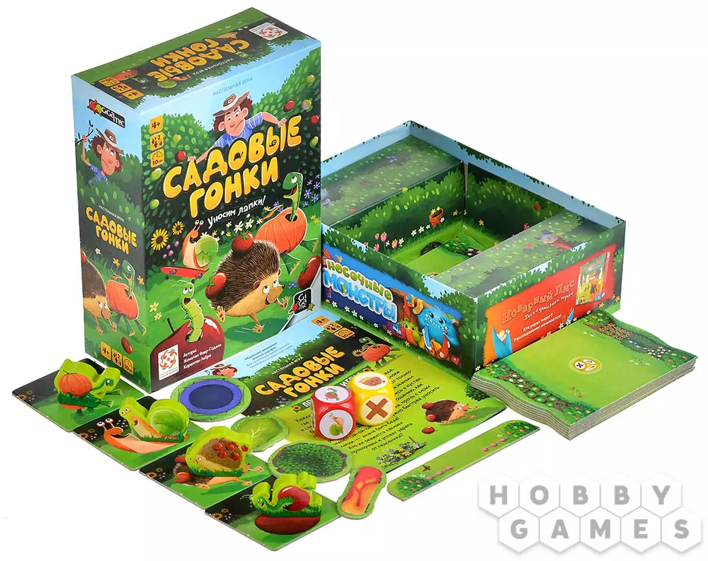 "Садовые гонки" – яркая и динамичная настольная игра для всей семьи, где вам предстоит возглавить побег весёлой звериной компании из сада. Ваша цель – первым привести своего подопечного к спасительной калитке, пока сердитый хозяин не поймал нарушителей. Всё очень просто и весело! Вашими помощниками станут два волшебных кубика с картинками зверушек. Бросьте их и выберите свою тактику на этот ход: помочь своему зверьку сделать шаг к свободе или отбросить назад самого опасного конкурента!