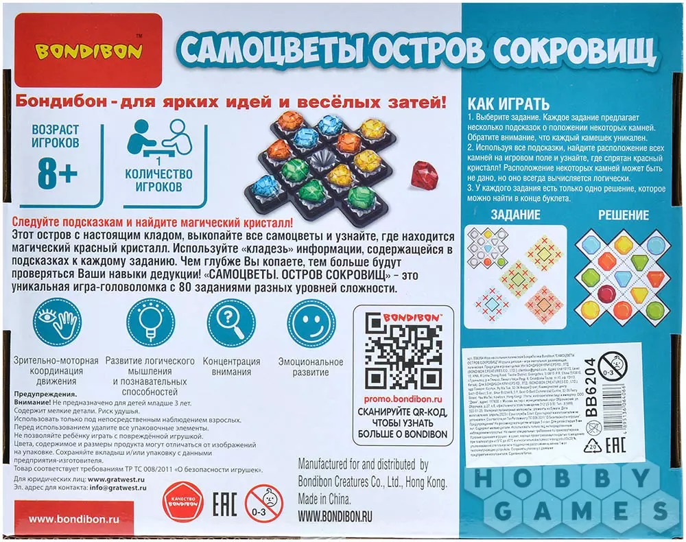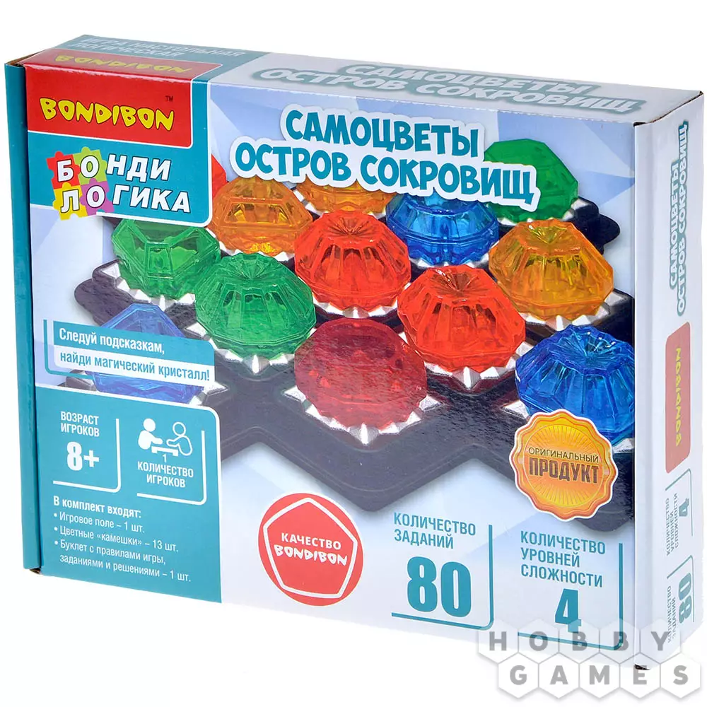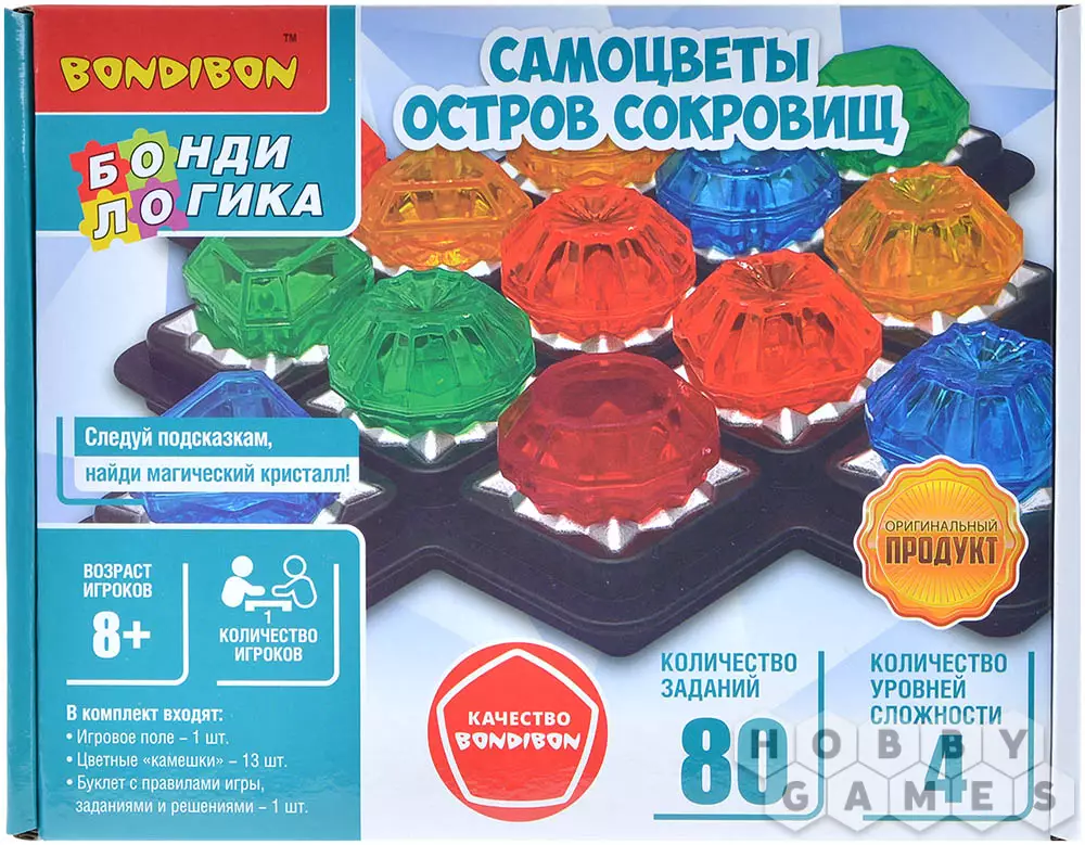Перед вами игра-головомка, которая с лёгкостью обучает, развивает, и, разумеется, развлекает юные пытливые умы! Вам не понадобится искать соперника, ведь игра предназначена для одного, но головоломку "Самоцветы. Остров сокровищ" также можно решать вместе с друзьями. Всего в игре содержатся 80 заданий четырёх разных уровней сложности – от самых лёгких к максимально сложным. Благодаря компактному размеру головоломки, вы можете начать игру где угодно и когда угодно.