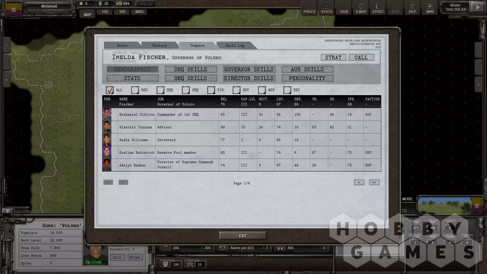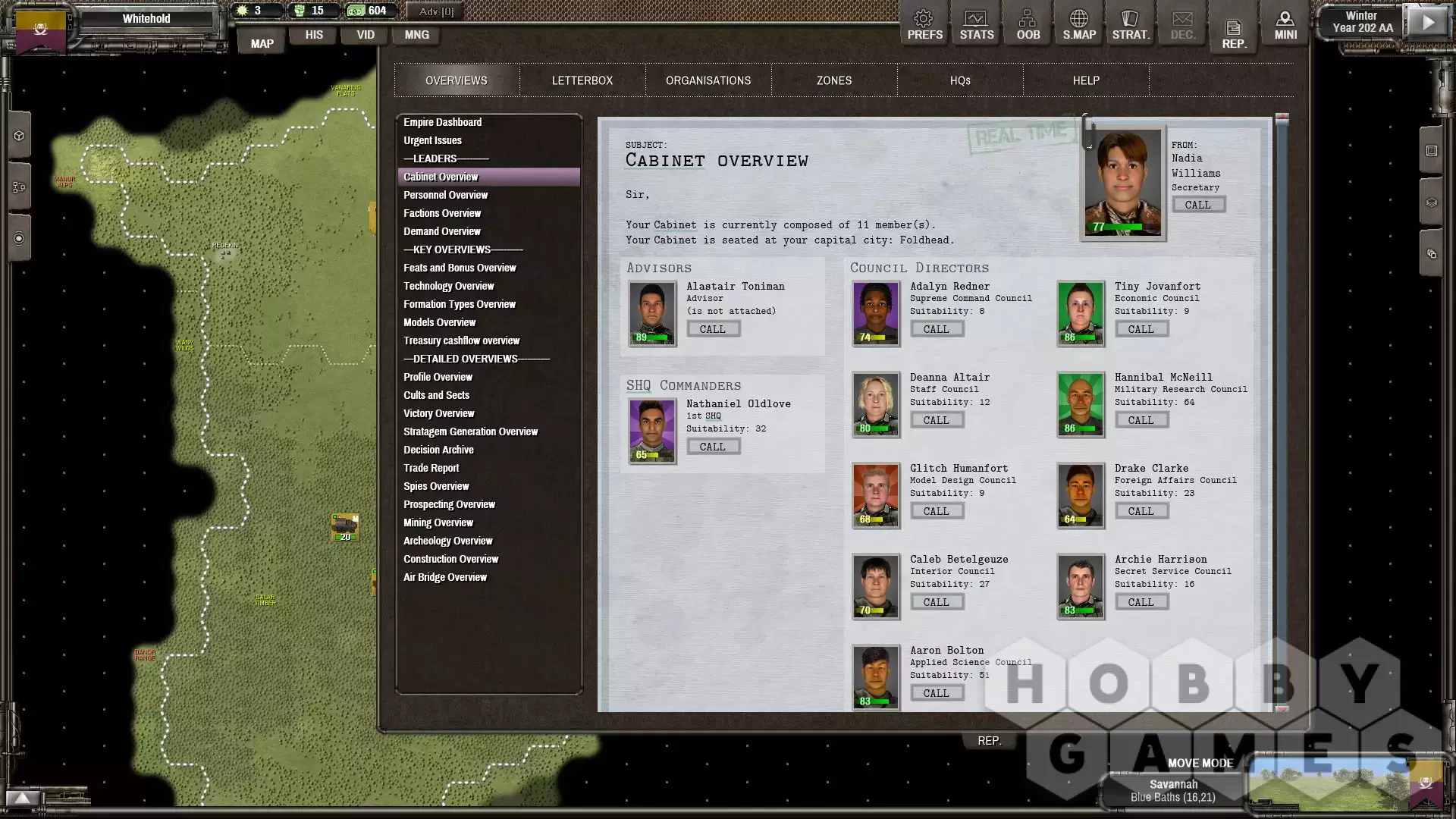 Нанимайте лидеров и назначайте их губернаторами зон, директорами советов, командующими армией или советниками. Лидеры могут иметь более 40 различных навыков, а также получать лидерские качества для увеличения своей статистики.