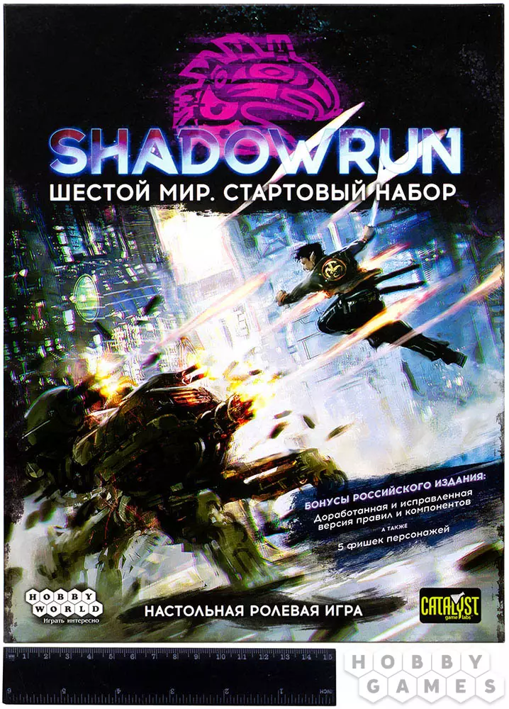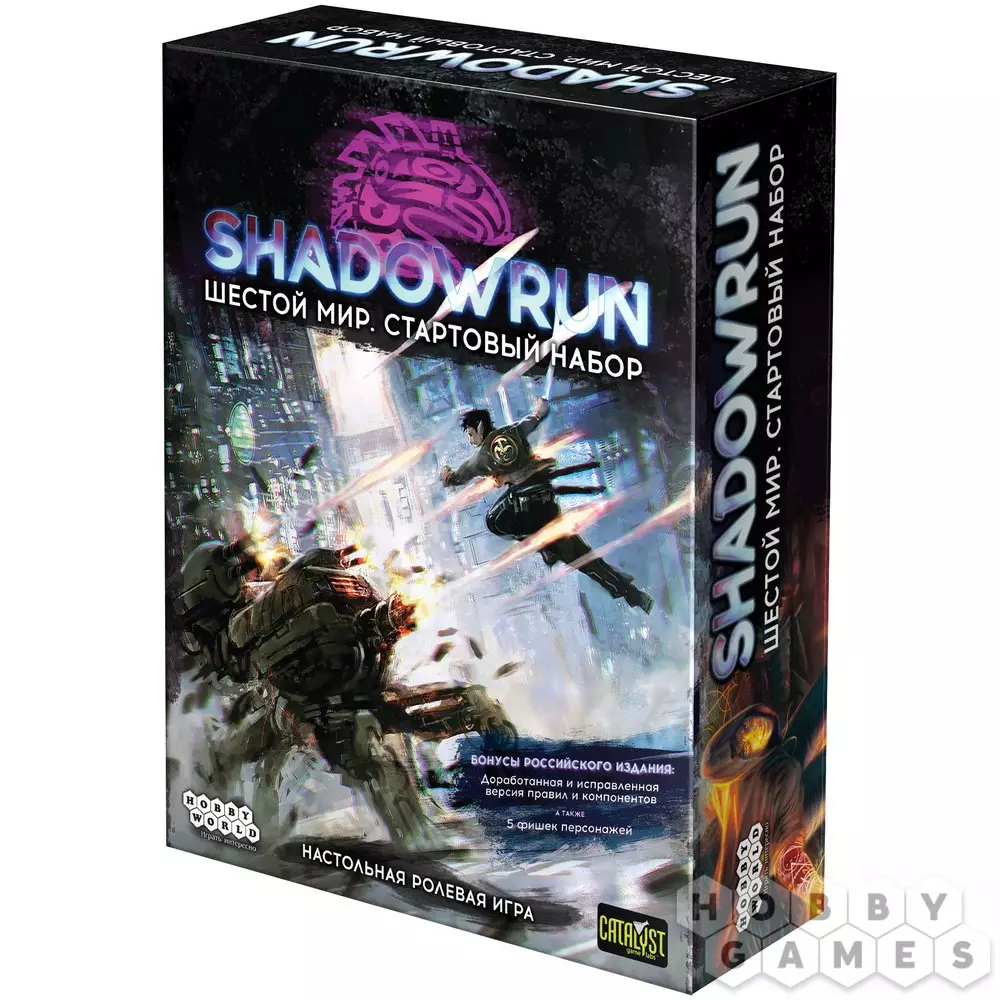 Перед вами мрачный мир будущего, где технологии и гнетущая атмосфера перемешаны с фэнтезийными расами, магией и даже эзотерикой. Настольная ролевая система получила новый приток игроков и популярности благодаря серии видеоигр по мотивам предыдущих редакций игры. Вы же окажетесь в шестой редакции правил Shadowrun и будете участвовать в тактических сражениях, творить магию и, конечно же, взламывать компьютерные сети.