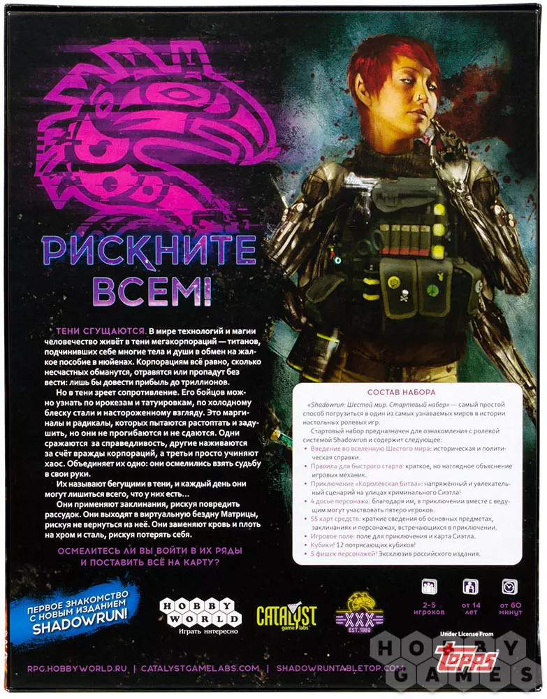 "Shadowrun: Шестой мир. Стартовый набор" – это великолепная и доступная возможность быстро и легко попробовать легендарную ролевую систему, в которой сплелись в один клубок киберпанк и высокое фэнтези.