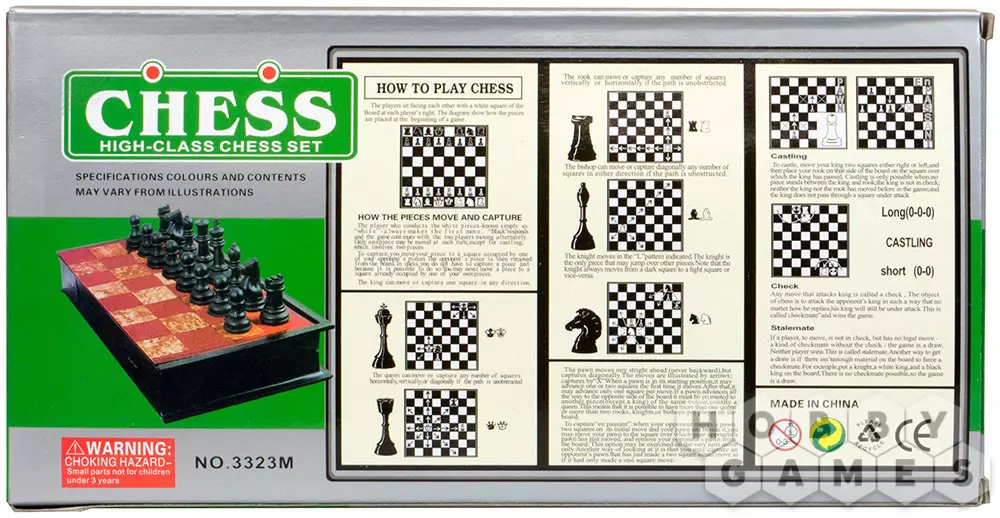 Классический набор состоит из 32 фигур чёрного и белого цветов. Фигуры можно хранить в сложенной доске.
