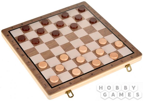 В комплект входят набор магнитных деревянных фигур, набор шашек и игровая доска.