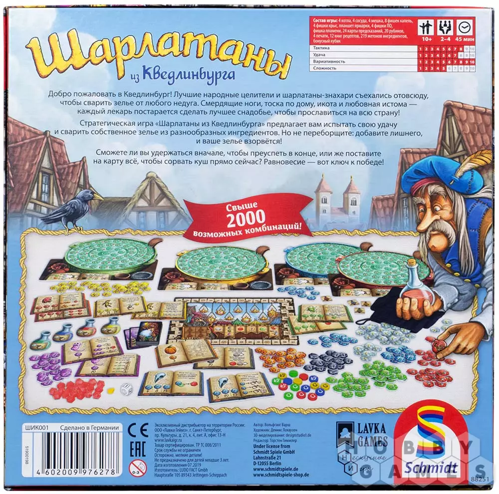 Александр Шаталов19.08.2020 12:45Если устали от кубиков, но любите рандом, то эта игра отличный вариант! Здесь каждый участник собственноручно управляет случайностью, которая влияет на ход и прогресс его игры. Задача в «Шарлатанах» простая – сварить как можно больше зелья, потому что получишь больше монет и победных очков, но главное не переборщить и не взорвать свой котел! Игра располагает несколькими видами жетонов ингредиентов, которые благодаря книгам рецептов по-разному взаимодействуют друг с другом и приносят различные бонусы и возможности. За счет этого реиграбельность очень высокая – на коробке написано о 2000 возможных комбинаций рецептов! Нам игра очень понравилась с самой первой партии. Когда хочется весело провести вечер, мы раскладываем «Шарлатанов» и играем сразу две-три партии под ряд! Игра однозначно стоит внимания и прекрасно играется разным составом участников, что вдвоем, что в троем, что в четвером. Качество компонентов отличное, так как игра печаталась вместе с мировым тиражом в Германии.