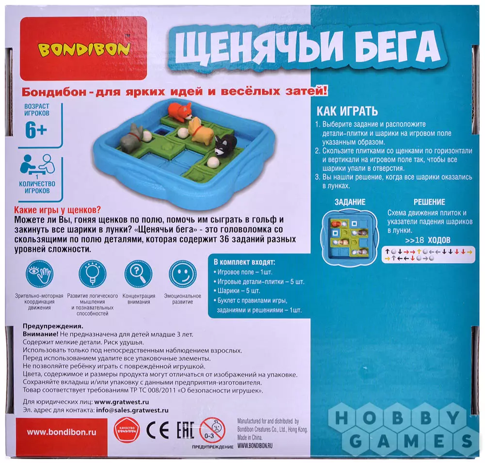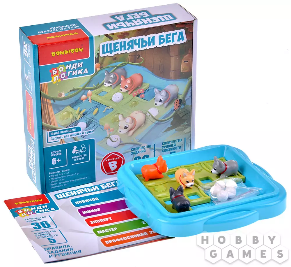 Помогите щенятам закатить все шарики в лунки в настольной игре-головоломке "Щенячьи бега". Управляйте собачками, перемещая их по полю так, чтобы никто никому не помешал, но при этом шарик попал точно в цель. Такой вид досуга хорошо развивает логику, мелкую моторику, концентрацию внимания и пространственное мышление. А главное – ребёнку такой процесс обучения будет в удовольствие. Яркие и милые щеночки привлекут к себе внимание не только детей, но и даже взрослых любителей животных.