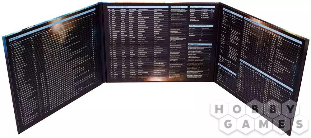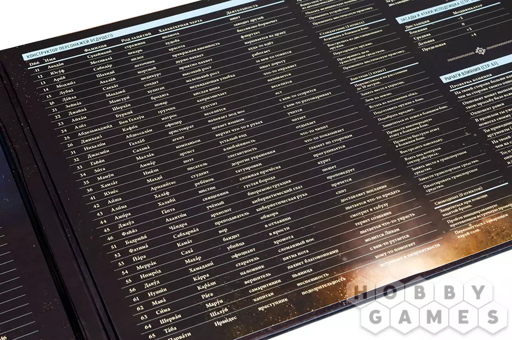 Игроки будут видеть прекрасную иллюстрацию, а ведущему станут доступны таблицы: травм, конструктора персонажей ведущего, действия, дистанции, засады, рычага влияния, брони, укрытия, дистанционного оружия и оружия ближнего боя.