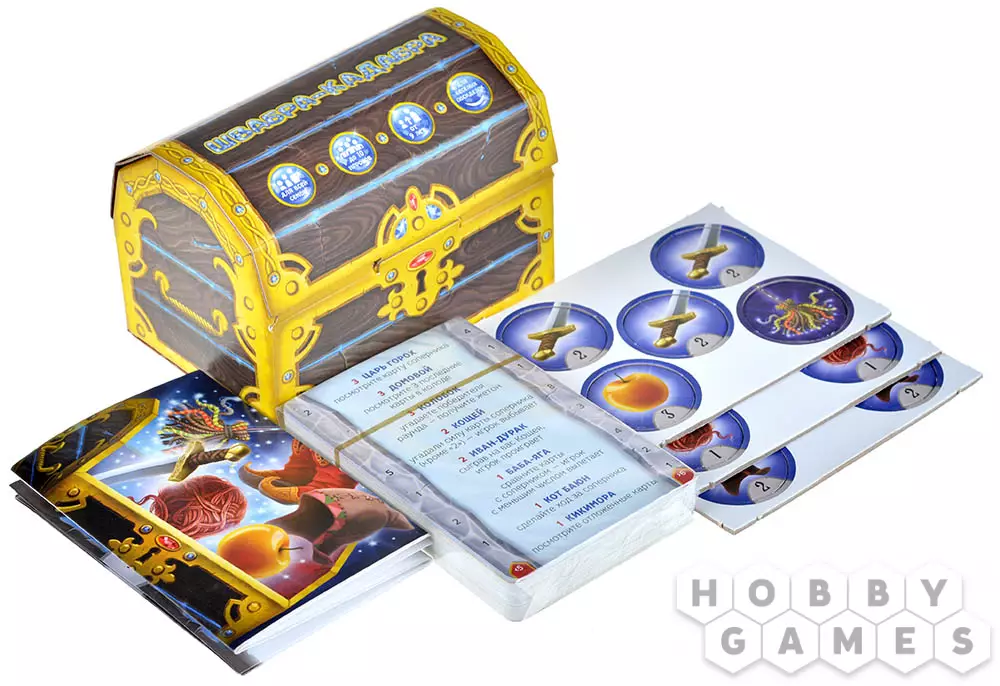 Слышали когда-нибудь о швабре-кадабре? Нет? Неудивительно! Древние маги стёрли из сказаний все упоминания о ней, считая её слишком опасным артефактом. Но вы, неустанные охотники за волшебством, обнаружили её след! И вот вам повезло достать сундучок сказочных вещиц, включая ту самую загадочную швабру-кадабру. В нём также спрятаны: молодильное яблочко, шапка-невидимка, сапоги-скороходы и волшебный клубочек. Однако вот вопрос: как честно поделить драгоценности между вашей дружной командой? Спор вышел нешуточный! К счастью, на помощь пришли знакомые всем с детства сказочные герои: храбрый Илья Муромец, хитрый Змей Горыныч, даже Водяной и красавица Жар-птица! Теперь сильнейший из вас сможет попытать удачу и вытащить из сокровищницы одну реликвию. Держим кулачки, чтобы легендарная Швабра-кадабра оказалась в ваших руках!