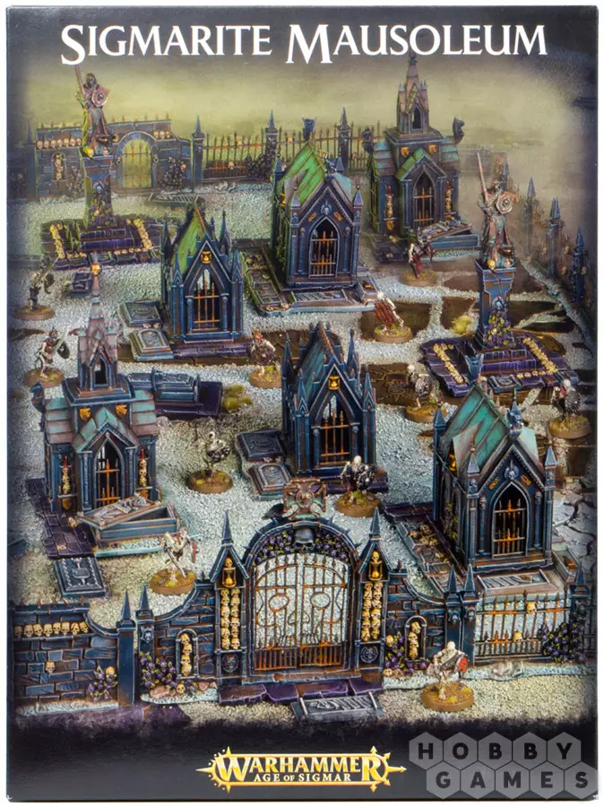 Сигмаритский Мавзолей - коллекция мрачных и величественных гробниц, могил, статуй, ворот и стен. Этот набор добавит вашим играм мрачности и таинственности, а также прекрасно подойдет для тематических сражений с участием нежити.
