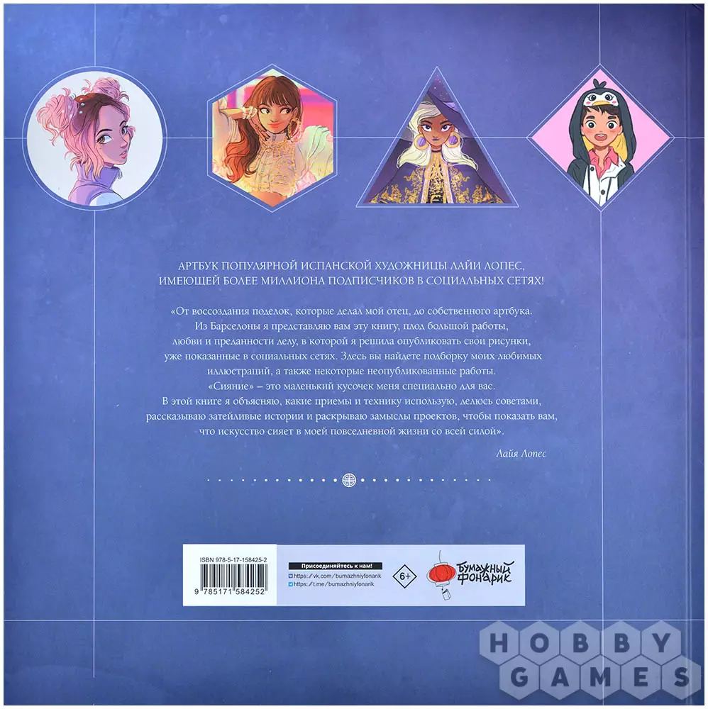 Перед вами Артбук художницы из Испании Лайи Лопес! Эта книга откроет вам мир необычайных иллюстраций, милых героев и волшебства. Художница не раз говорила о своей страсти к K-pop музыке, поэтому неудивительно, что в книге так много артов с её любимыми корейскими исполнителями. Помиомо этого девушка обожает анимационные фильмы и культуру шоу-бизнеса, так что ещё парочку известных персонажей вы тут точно встретите.